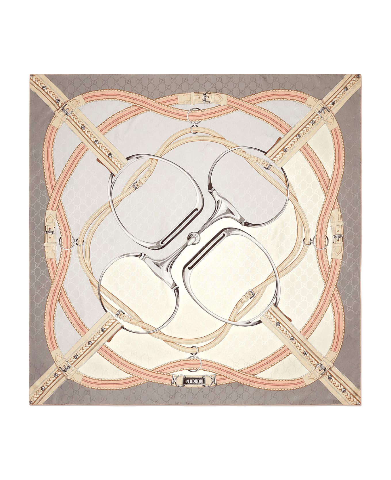 - Print With Iconic Horsebit - All-over Gg Motif - 90 X 90 - Made In Italy - 100% Silk