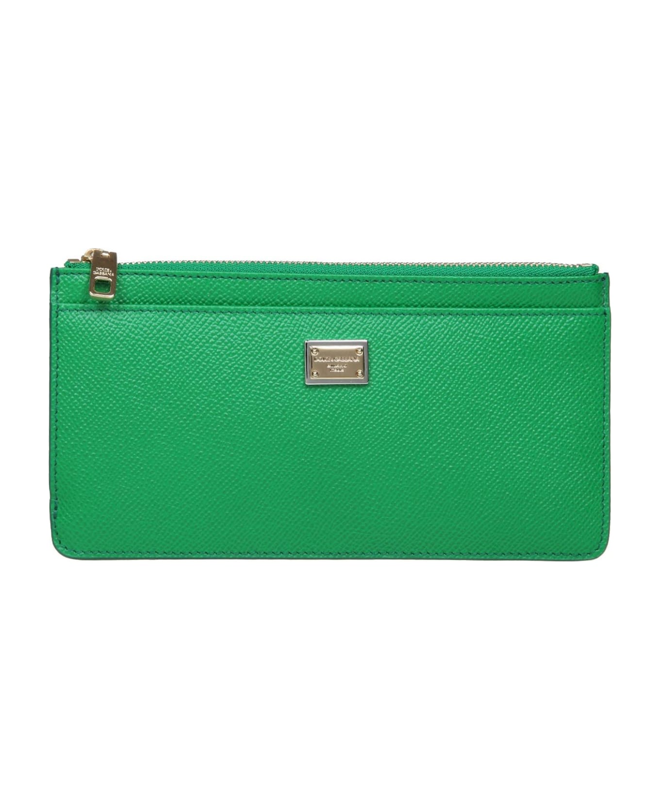 Card holder in calfskin green colour zip closure 1 slit pocket on the front card pockets on the back baroque dg metal logo fabric interior dimensions: length 18. 5 cm height 9. 7 cm depth 1,5 cm external composition: 100% calf leather internal composition: 80% calfskin 20% viscose made in italy