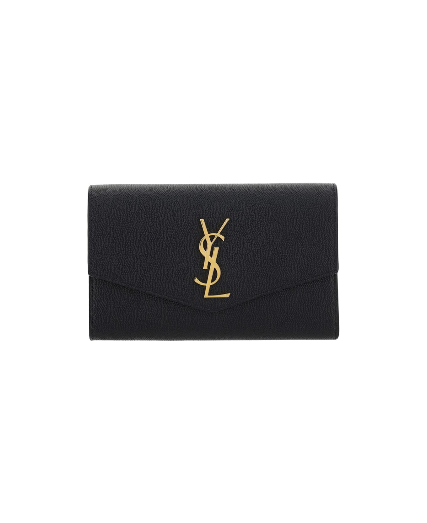 Calfskin chain wallet by saint laurent, quilted texture with flat back pocket and front embossed gold-tone logo, zip closure with tassle, adjustable shoulder strap, internal card slots. Composition: 100% % Calf Leather Bos Taurus