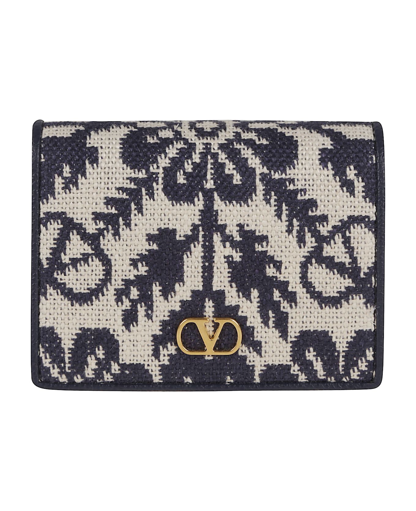 Jacquard Fabric Wallet with Floral Pattern by VALENTINO GARAVANI. Snap button closure; five card slots and one flat pocket, zip coin pocket and one bill pocket. Features Vlogo Signature.