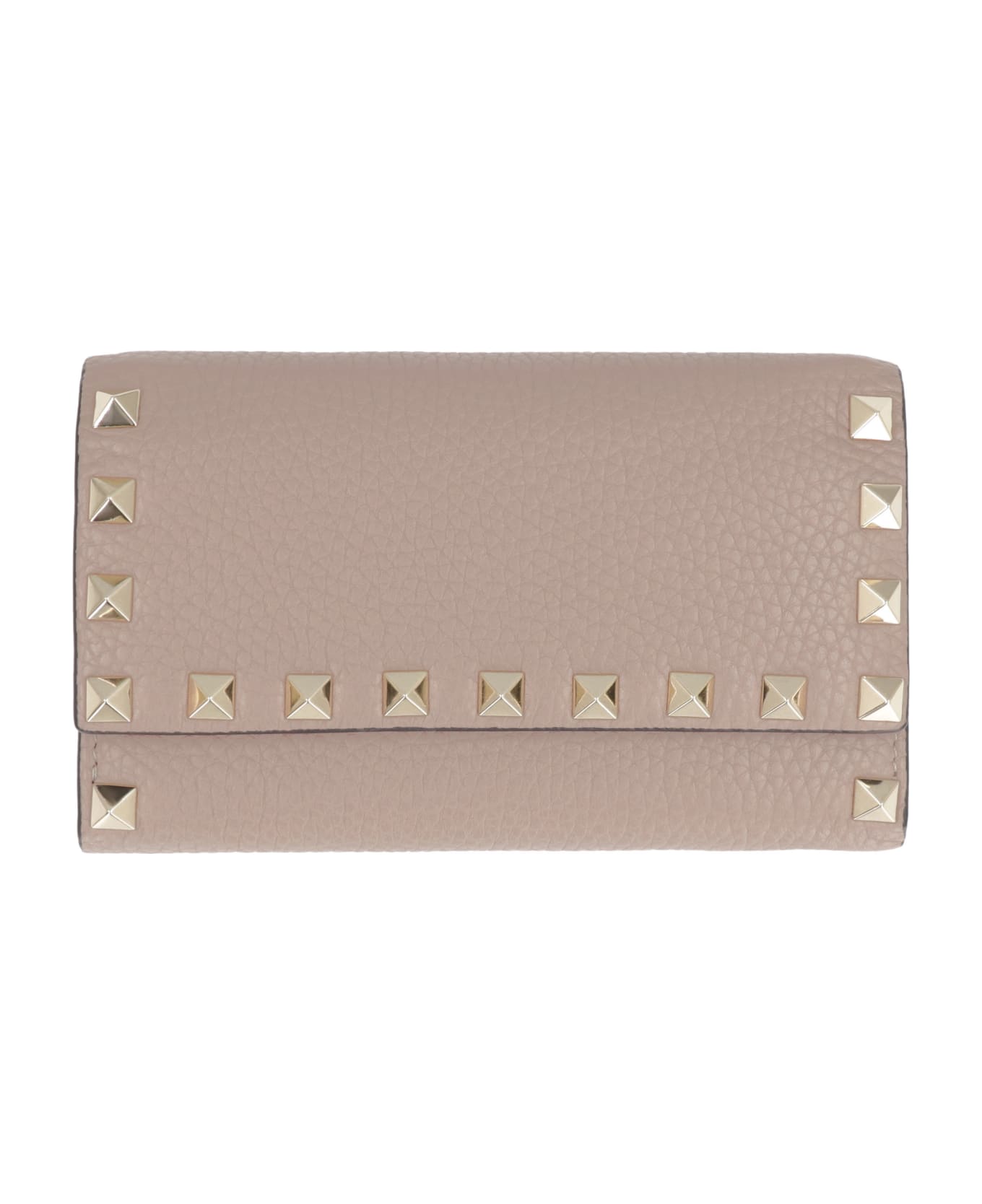 Pebbled calfskin item decorative gold-tone metal studs snap button closure one bill pocket one coin zippered pocket two internal flat pockets eight card slots leather lining gold-tone metal hardware width: 14 cm height: 8 cm depth: 2 cm 100% calf Composition: 100% % Calf