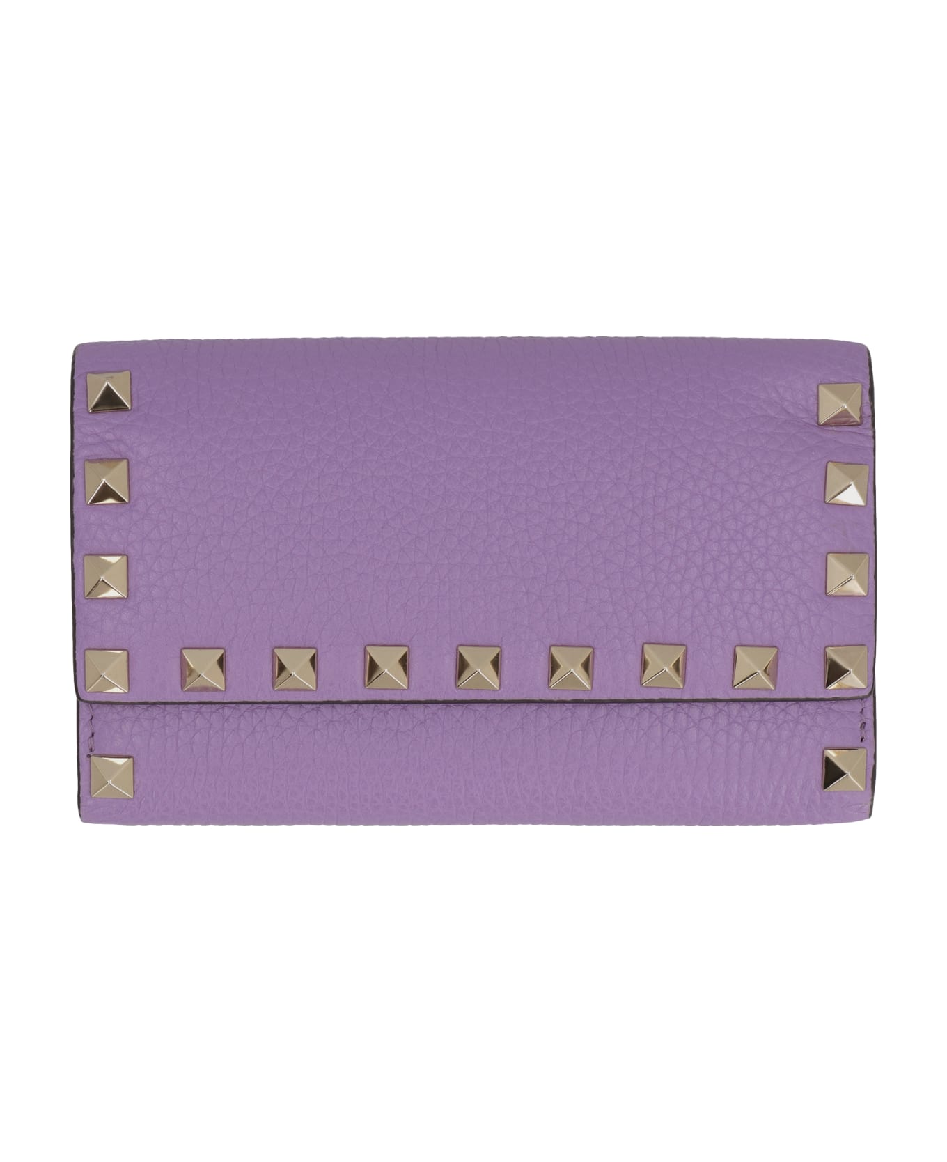 Grainy leather item decorative gold-tone metal studs snap button closure one zipped coin purse bill compartment two internal flat pockets eight card slots leather lining gold-tone metal hardware width: 14 cm height: 8 cm depth: 2 cm 100% calf Composition: 100% % Calf