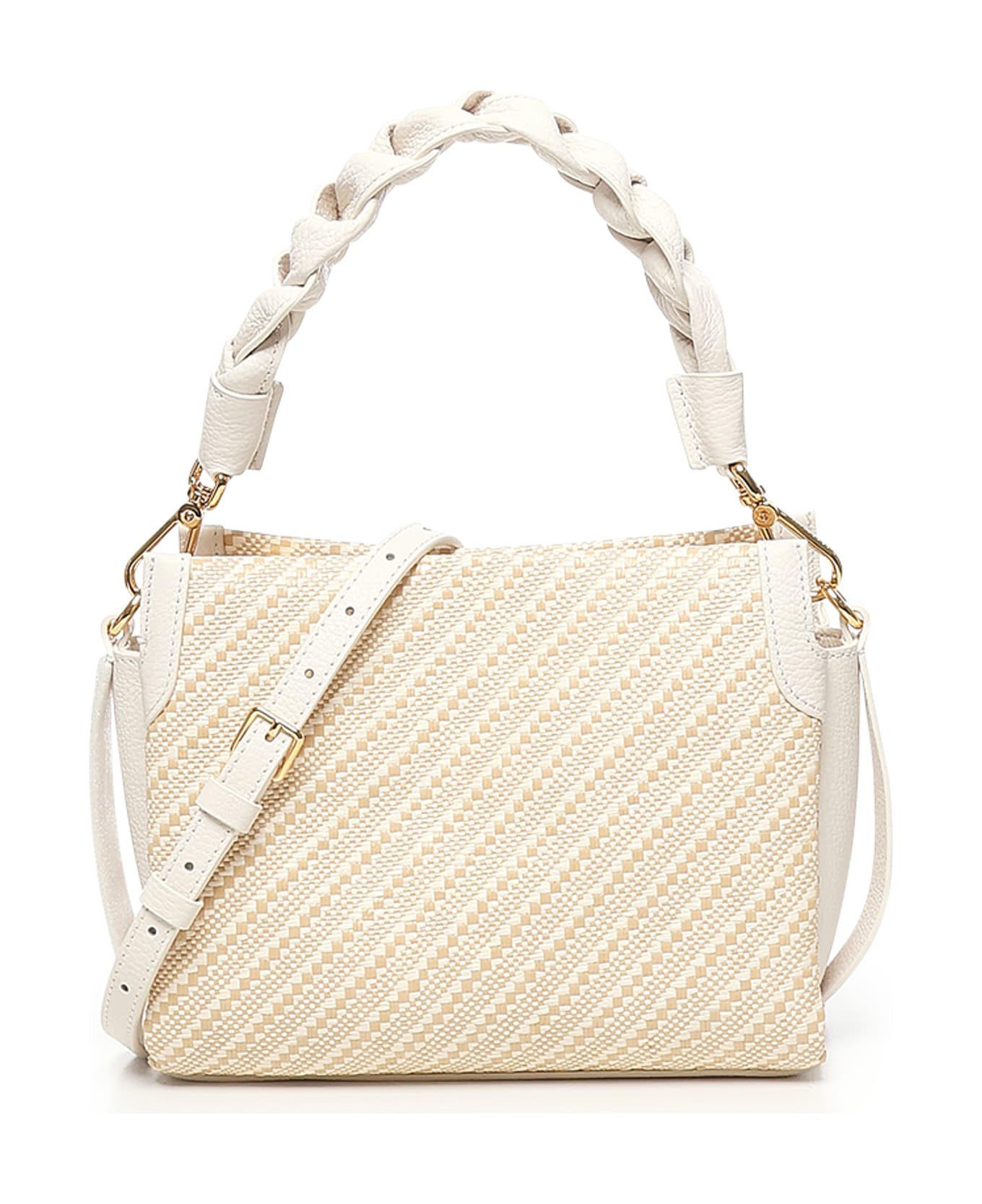 -Wearable: by hand and over the shoulder -Braided handle -Internal compartment closed with zip -Removable and adjustable shoulder strap -Dimensions: 23 x 18 x 10 cm -Color: Off-White