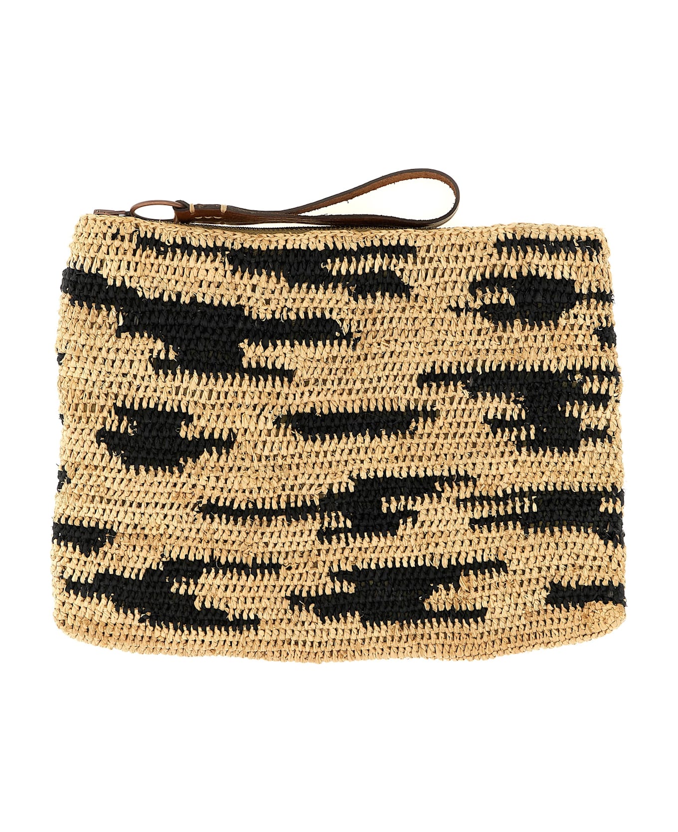 'Ampy' clutch bag in two-tone crochet raffia, leather handle, zip closure. Handcrafted product, any imperfections are to be considered characteristics of uniqueness. Composition: 100% raffia