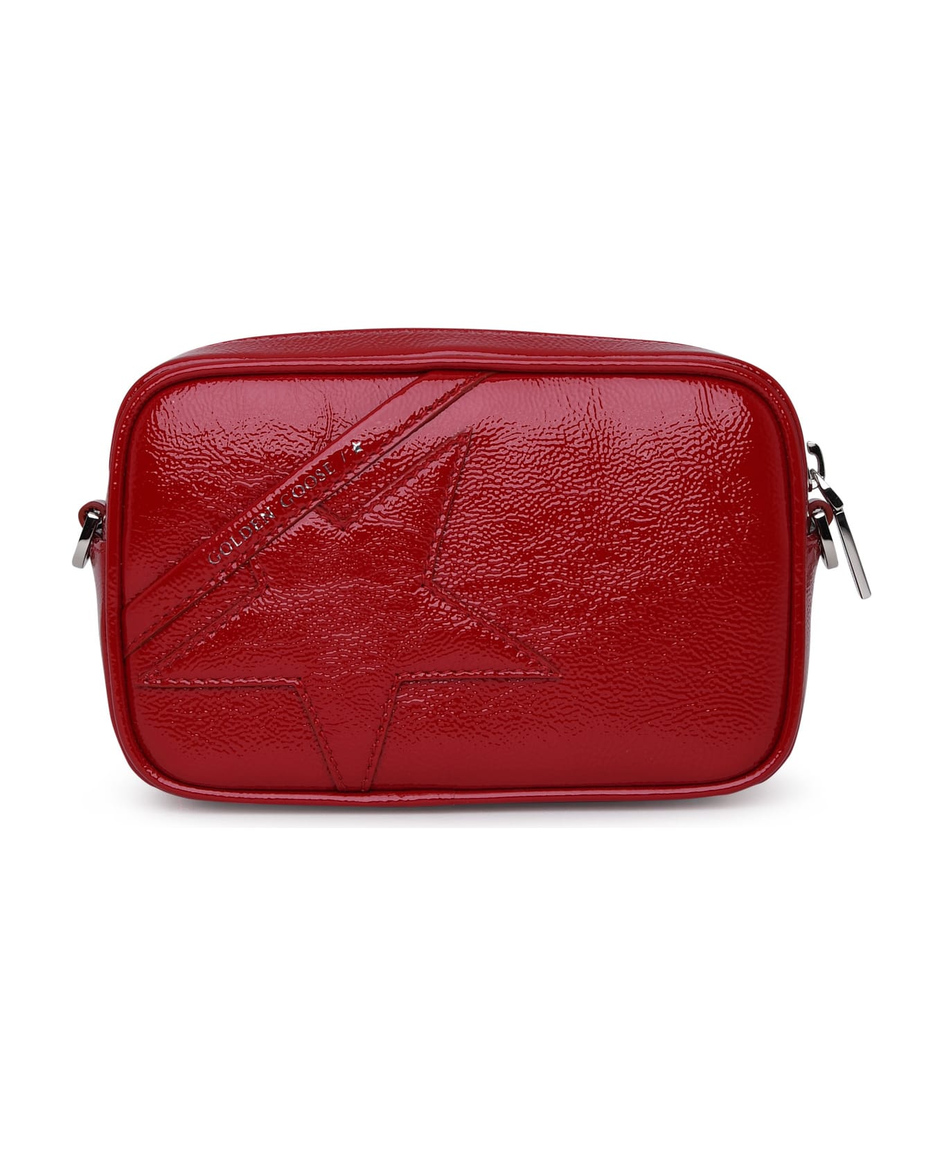 Shiny leather star on the front, silver contrasting logo, removable chain shoulder strap, internal slit pocket