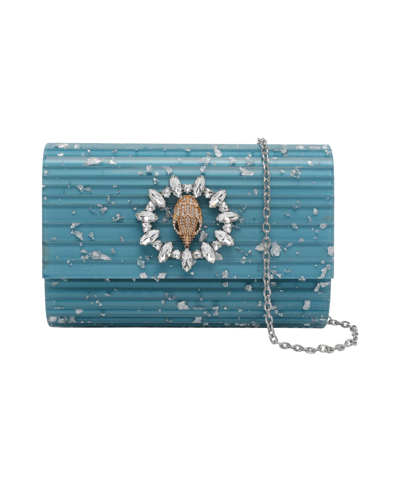 Kurt Geiger light blue Party eagle clutch, magnetic closure, inner slot, removable chain strap, frontal logo Composition: 95% Acrylic, 5% Metal