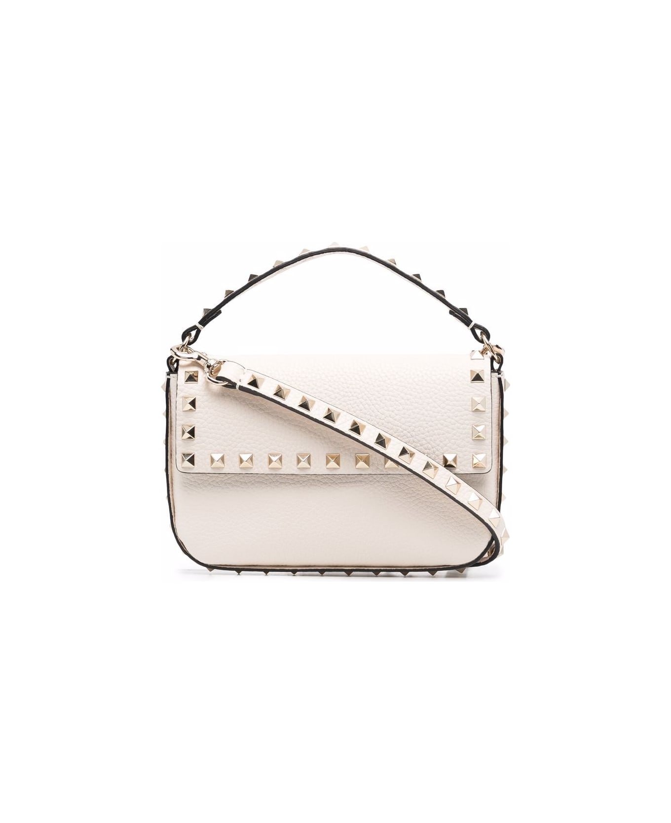 Valentino bag white leather gold-tone Rockstud detailing foldover top with magnetic fastening single flat top handle detachable shoulder strap internal card slots The full look includes Valentino Garavani accessories. Composition: Calf Leather, 100%