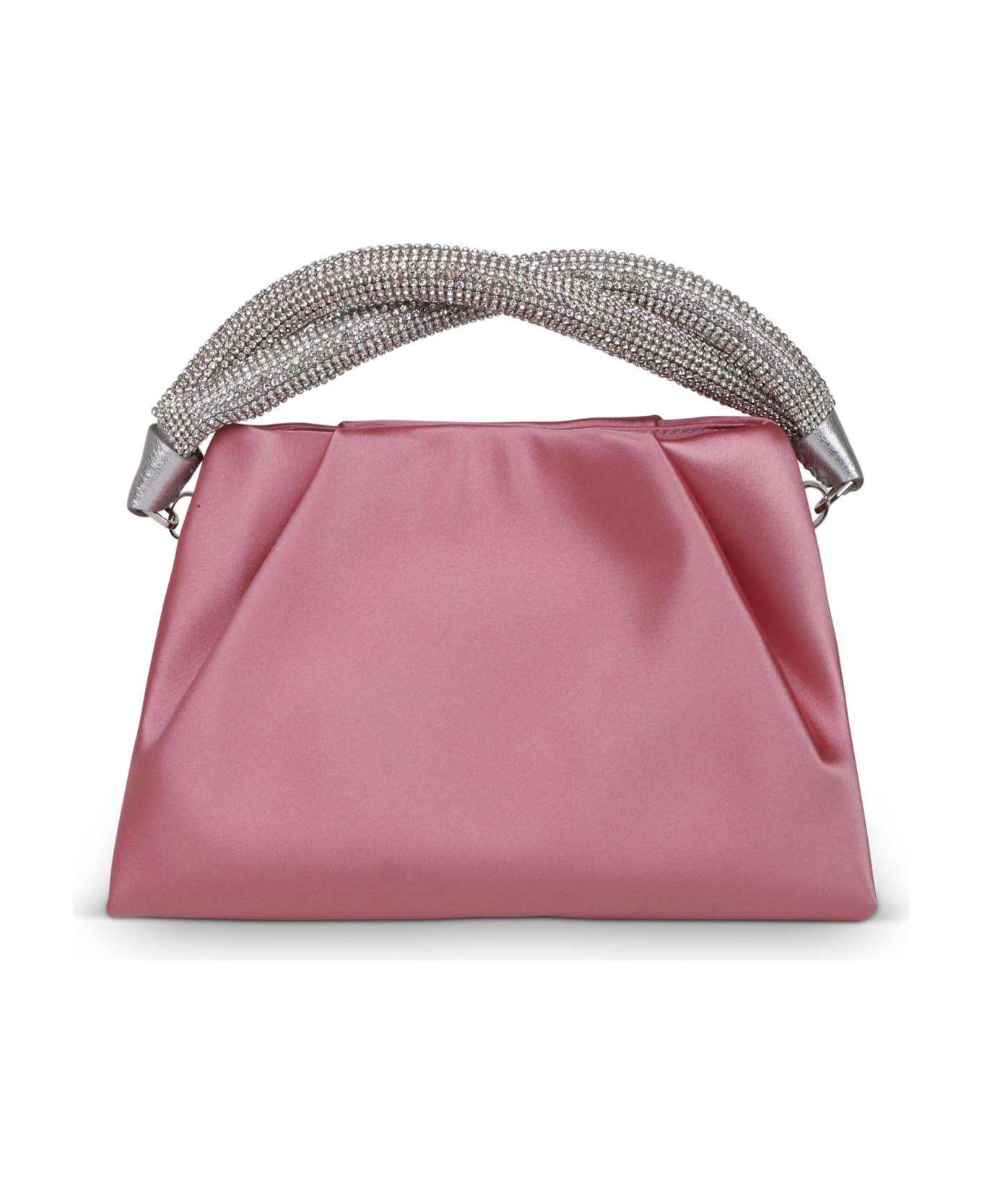 Berenice silk-satin clutch bag from RODOSilk-satin. Crystal embellishment. Circular top handles. Main compartment. 100% silk, 100% crystal. Made in Italy.