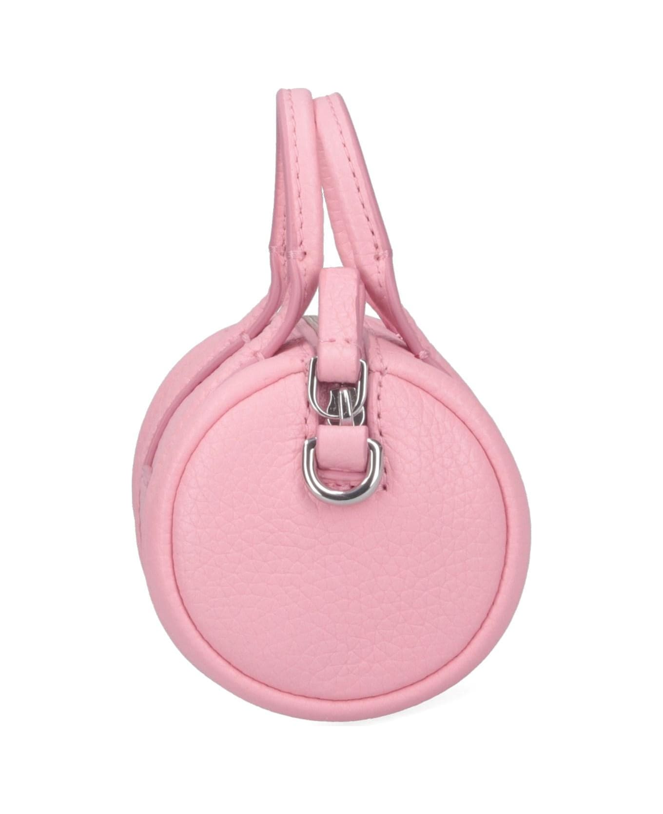 Marc Jacobs The Duffle Crossbody nano bag in red hammered leather with gold metal details, top case design, two rigid top handles, removable chain shoulder strap, embossed logo on the front, tone-on-tone logo patch on the back, zip closure, and a single inner compartment. composition: 100% leather size and fit: h 7 x w 11 x d 7 cm
