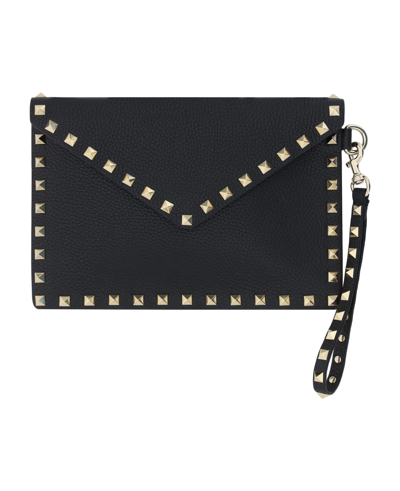 Calfskin rockstud medium clutch bag by valentino garavani, grained leather design, beading made with iconic brand studs applied on front and back, front closure by magnetic flap, iconic brand monogram printed in pressure and contrast on back. Composition: 100% % Calf Leather Bos Taurus