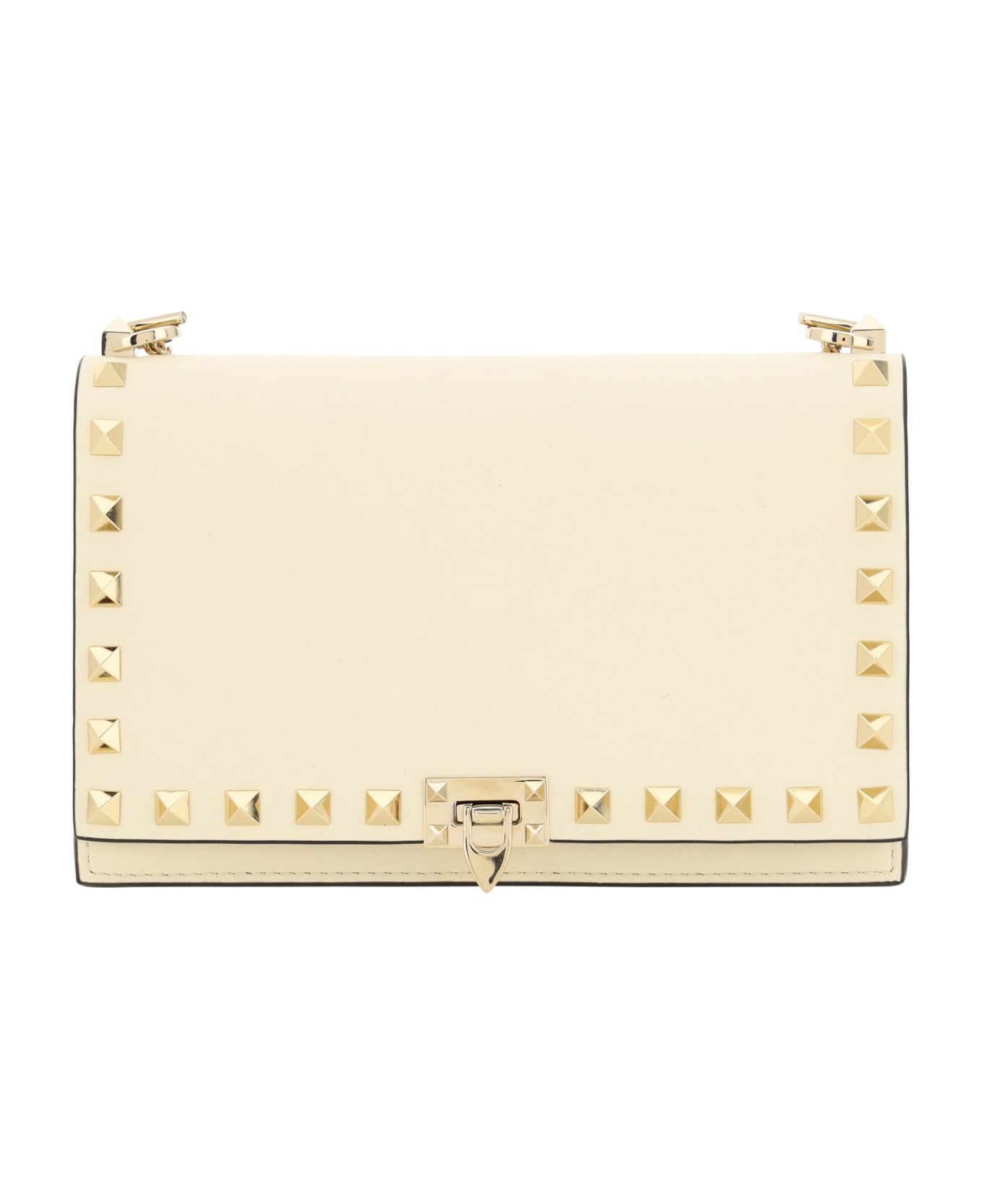 Calfskin rockstud shoulder bag by valentino garavani, grained leather design, beading with the brand's iconic studs applied to the front and back, front fastening by means of a pivot, iconic brand monogram printed in pressure and contrast on the back, leather shoulder strap and removable chain. Composition: 100% % Calf Leather Bos Taurus