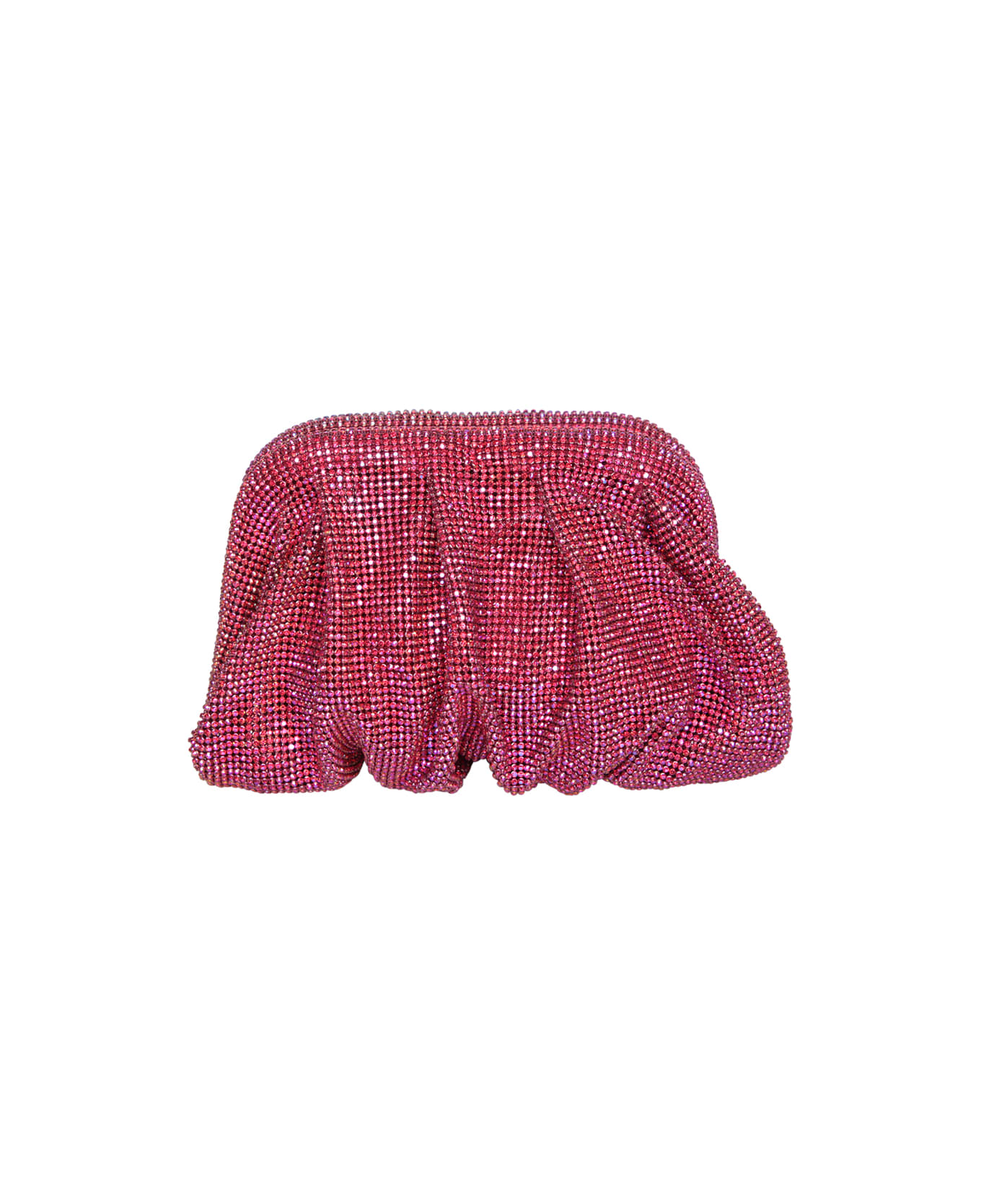 Clip fastening. Main compartment. Satin lining. Crystal embellishment. Gatherede detailing. Color: red