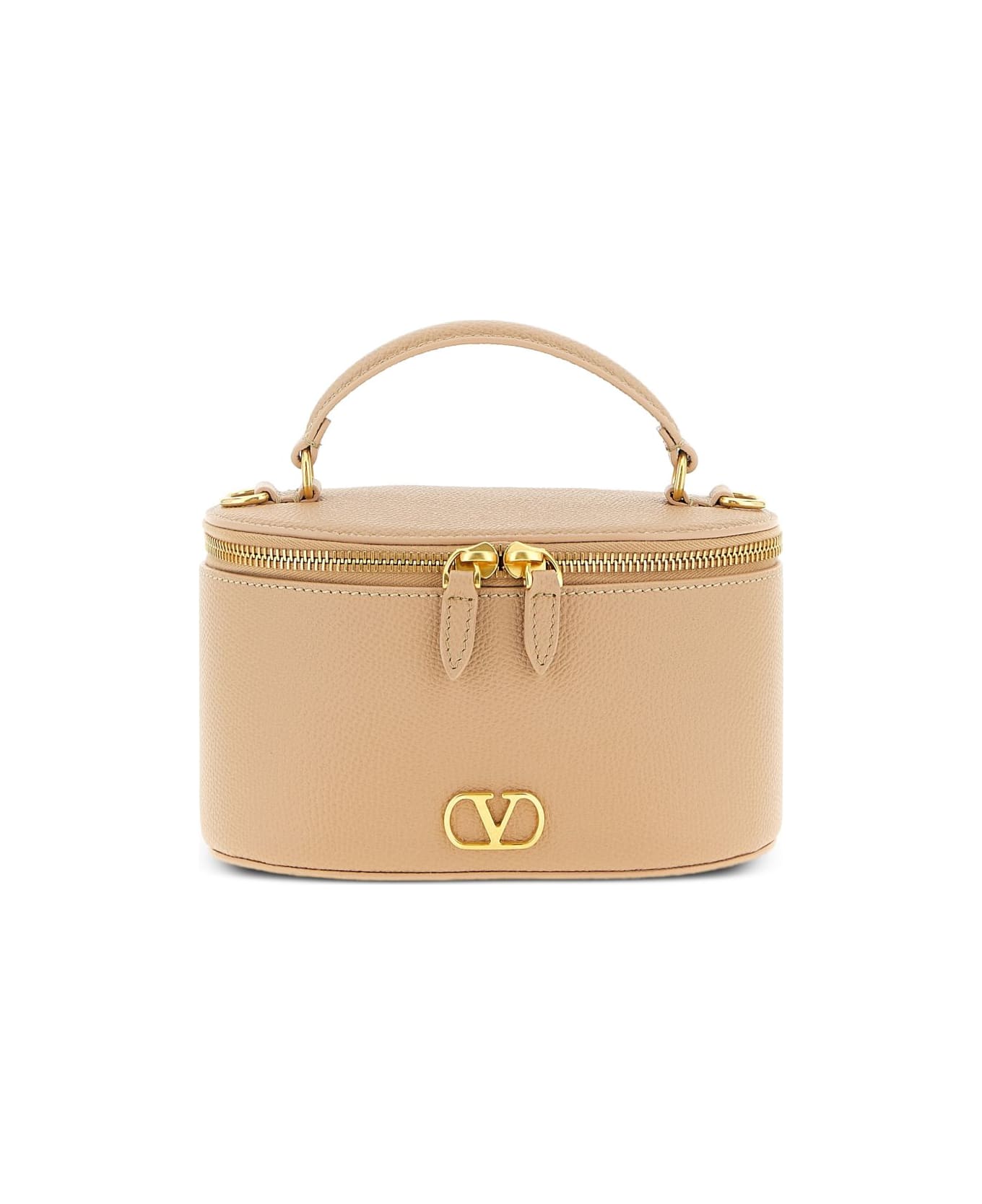 beige grained-texture leather logo hardware fixed top handle adjustable and removable shoulder strap zip closure Composition: Calf Leather, 100%