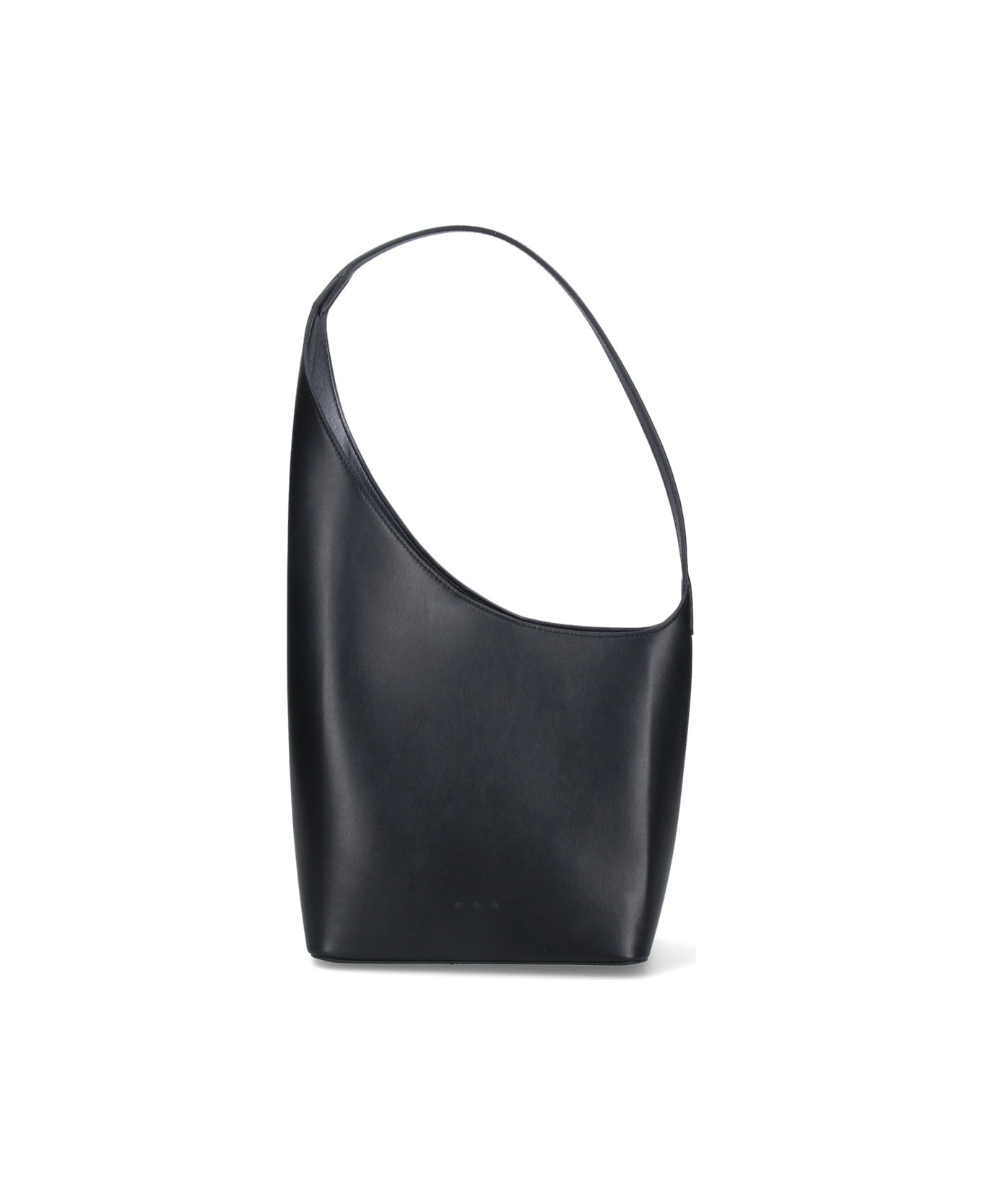 Aesther Ekme Demi Lune mini bag in black brushed leather with top handle, magnetic closure, inner flat pocket, main inner compartment.