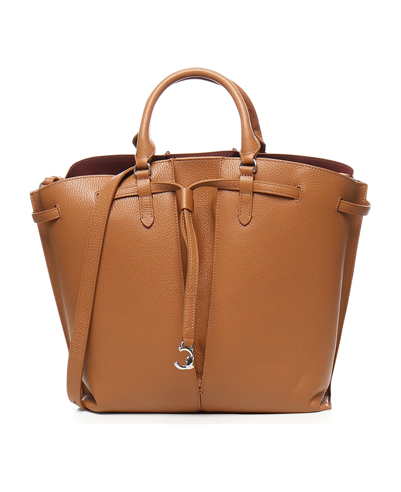 -Drawstring closure -Adjustable and removable shoulder strap -Interior pocket -Two leather handles -Dimensions: 33 x 30 x 10 cm -Colour: Camel