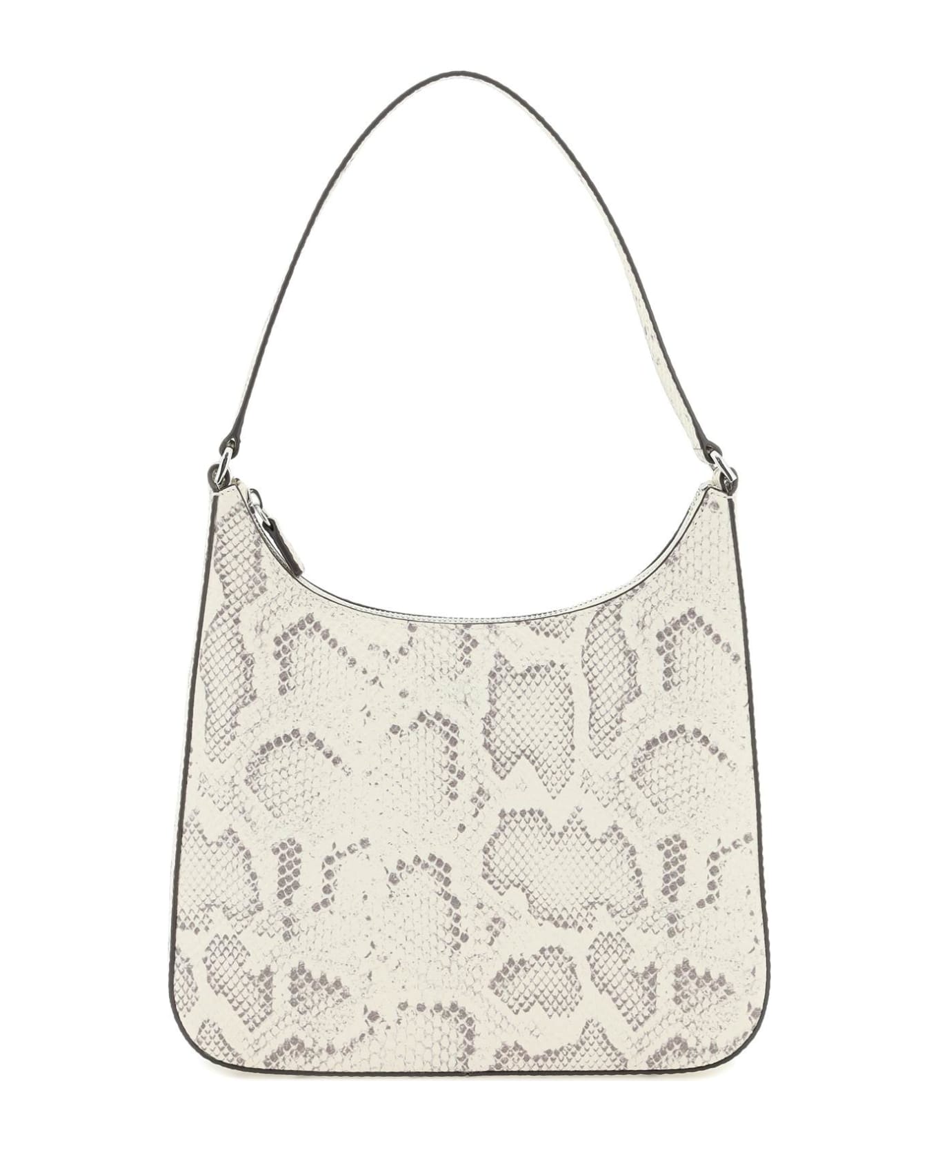 Alec shoulder bag by Staud crafted in python-embossed leather and characterized by the structured design with single top handle. Metal logo on the back, top zip closure, suede-lined interior with a zipped flat pocket and an open flat pocket. Silver-finished metalware.