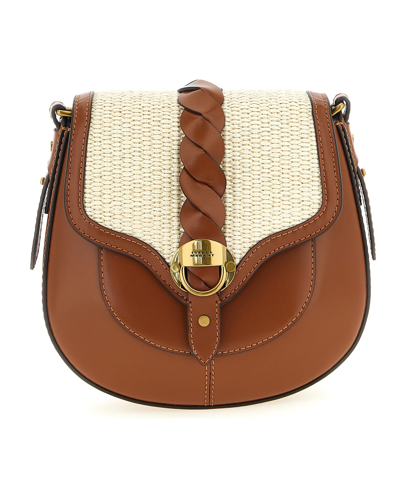 Small smooth leather 'Altay' shoulder strap, magnetic flap closure with contrast woven raffia insert with braided leather strap and metal logo tag, back pocket, adjustable shoulder strap. Composition: 100% calfskin leather (Bos Taurus)