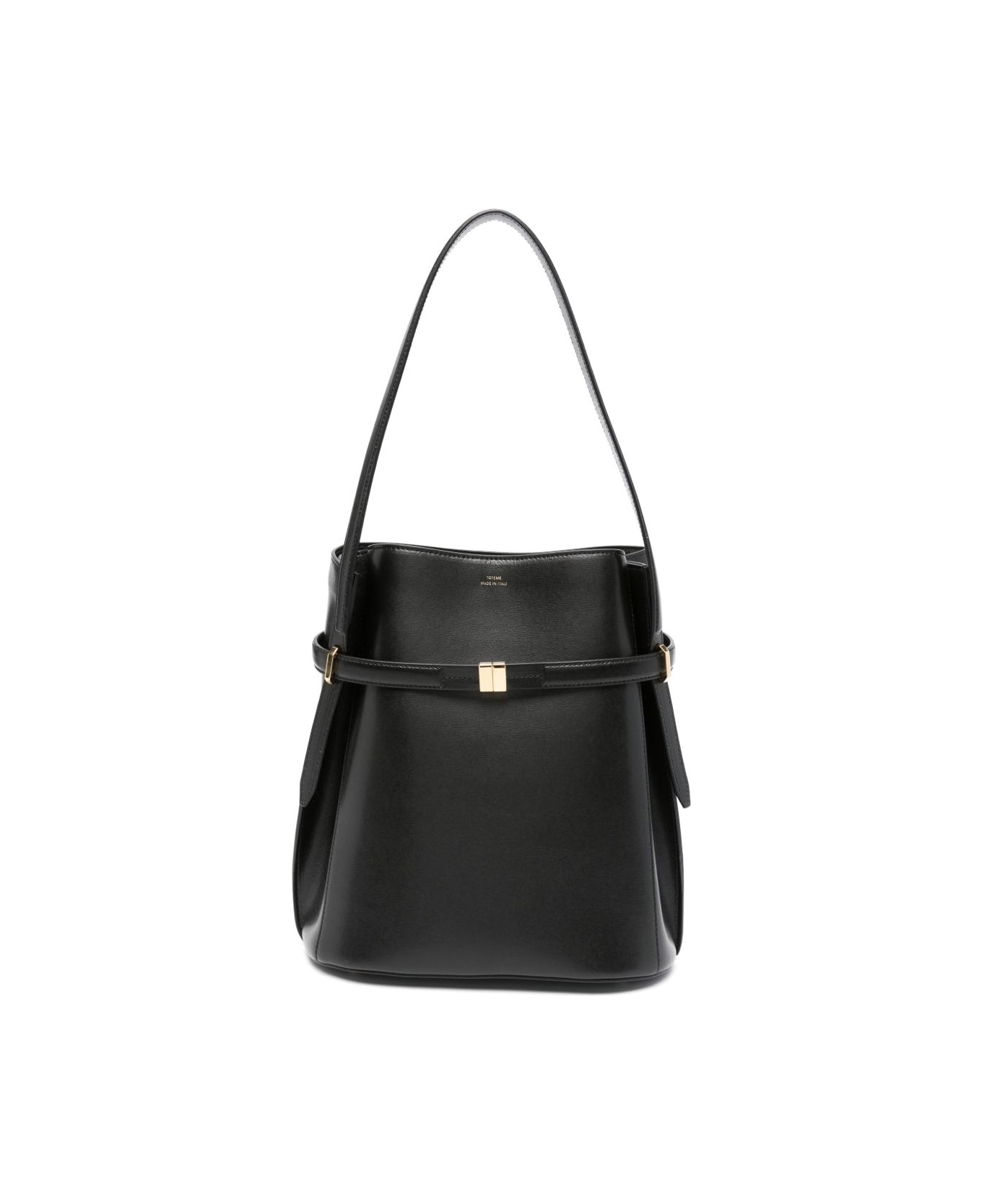 black calf leather smooth grain panelled design lobster claw fastening single shoulder strap logo stamp to the front expandable sides with belted clasp fastening metal feet main compartment multiple internal slip pockets This piece comes complete with a protective dust bag.