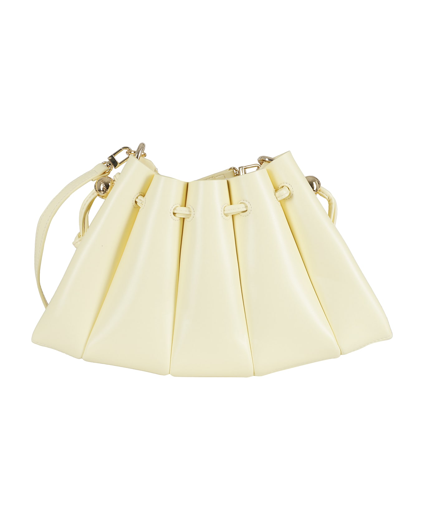 Category: Bag Item: Calipso Bag Brand: Themoirè Color: Pastel yellow Details: Removable shoulder strap, Interior zippered pouch SIZE AND FIT Width: 31. 5 cm Height: 20 cm