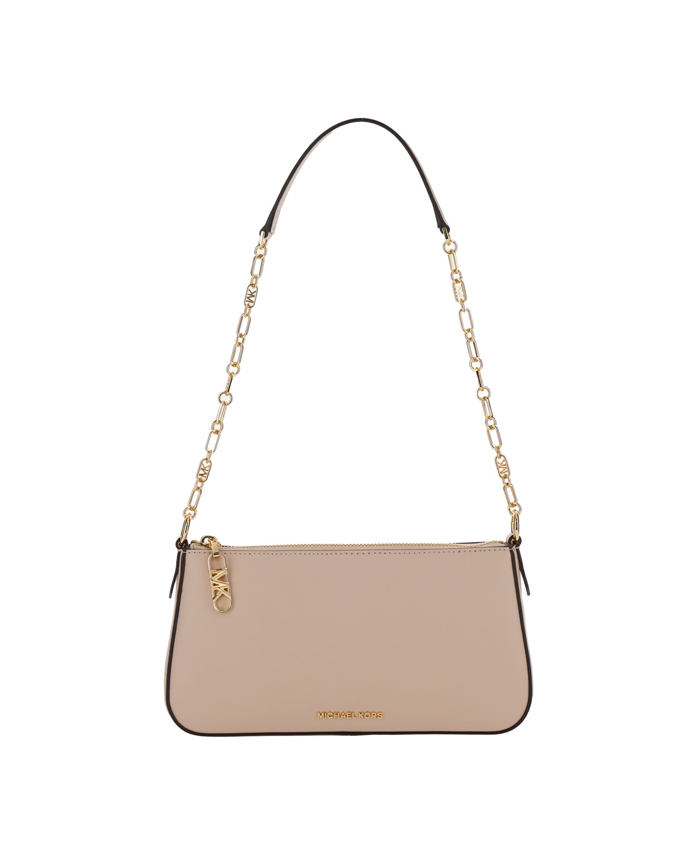 'empire' Pink Shoulder Bag With Chain-link Shoulder Strap And Logo Plaque On The Front In Leather Woman