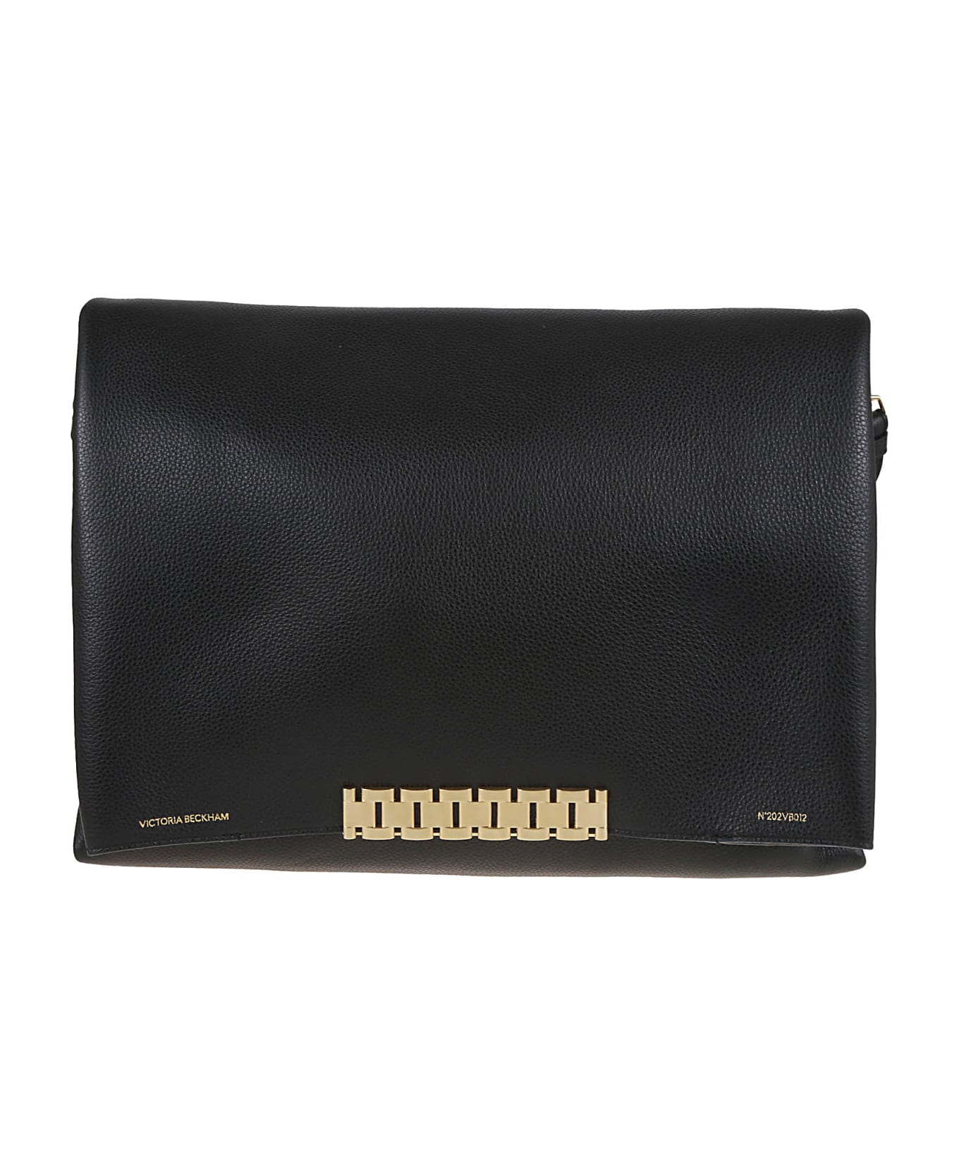 Jumbo Chain Pouch in grained nappa leather BY VICTORIA BECKHAM. Central compartment with zip; suede interior finish. Removable shoulder strap; for a versatility of style to be worn both as a clutch and as a shoulder bag and external gold-colored chain detail.