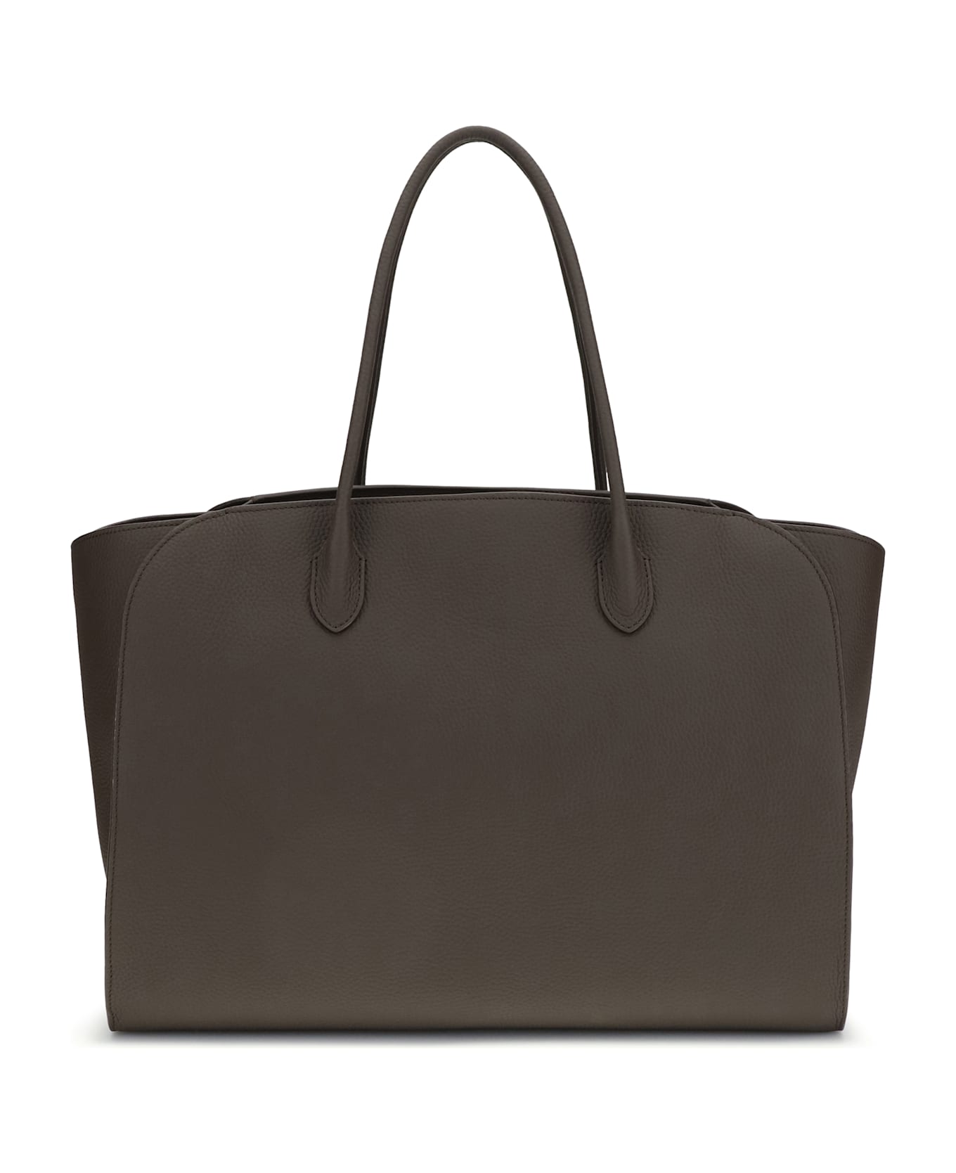 The marlo 17 tote bag by the row is an elegant tote made from matte hammered calf leather with a soft structure and tubular handles. the gusseted side panels offer extra space, while the zip closure ensures security. the antique silver hardware finish adds a sophisticated touch, making it perfect for any occasion, from work to leisure.
