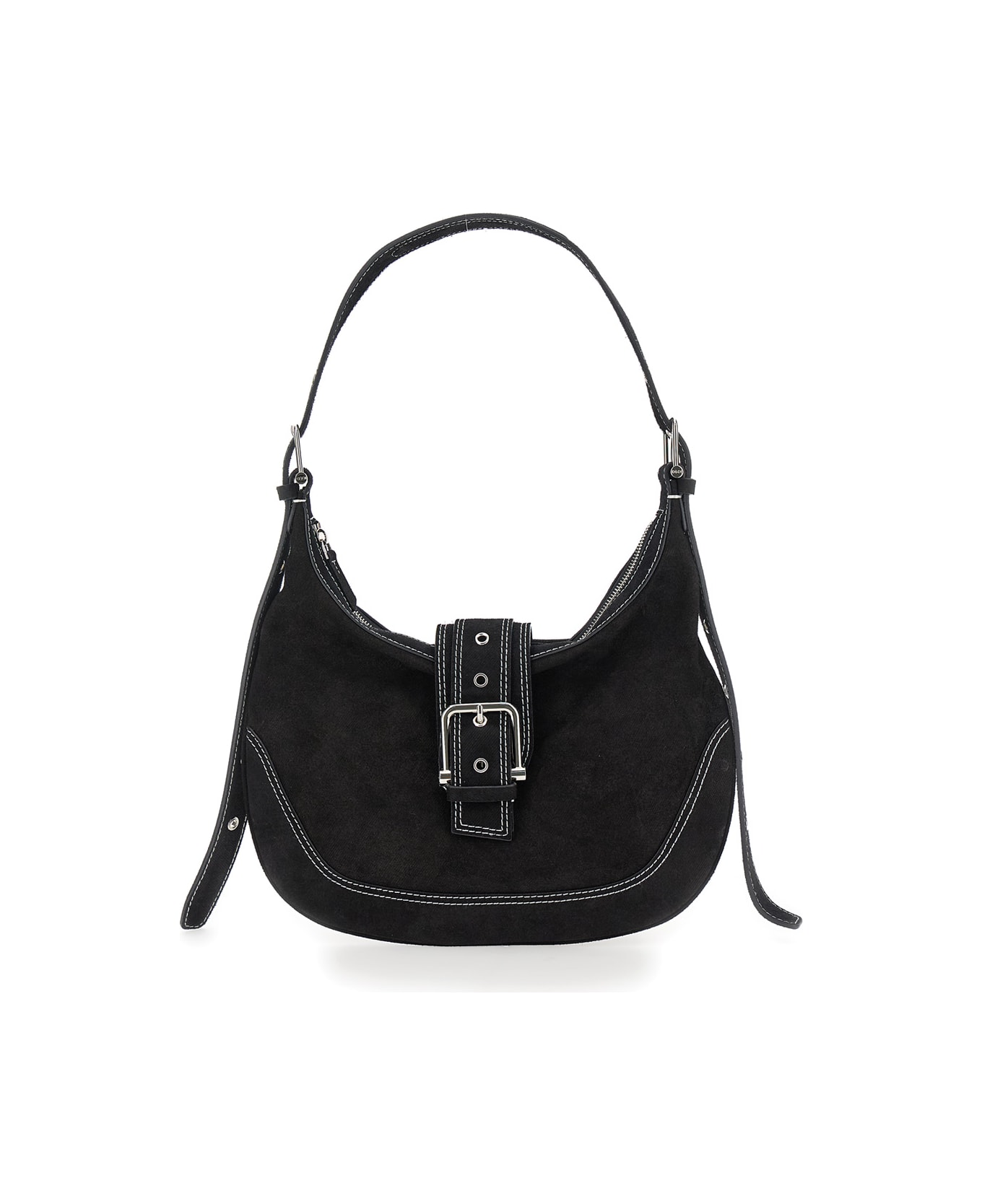 Shoulder bag Black Adjustable closure Zip and buckle closure Contrasting stitching Silver tone metalware Denim Dimensions: 31x18x10 cm