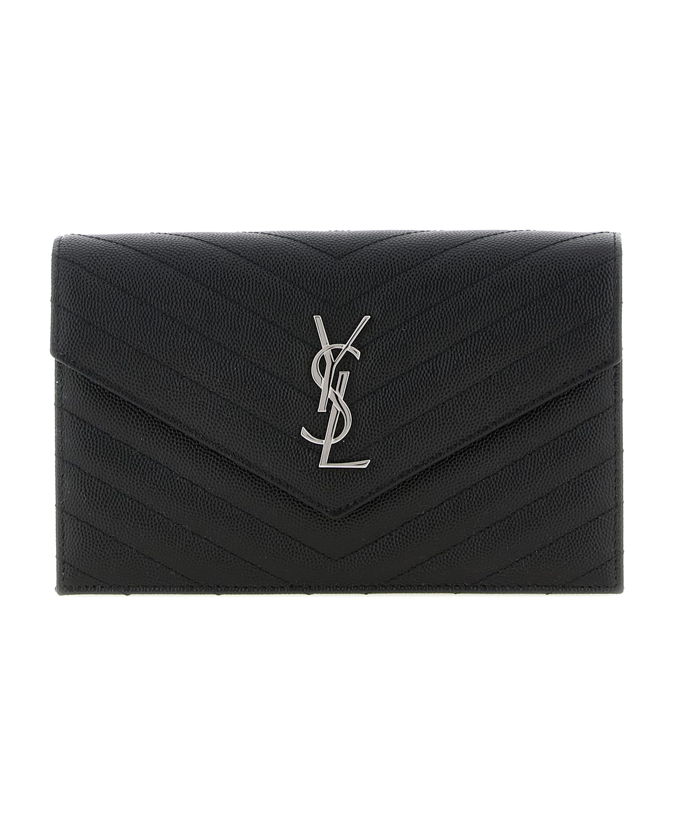 Envelope' crossbody bag in chevron quilted grain de poudre leather, flap closure with snap button and brass 'Cassandre' logo on the front, envelope structure, grosgrain lining, chain shoulder strap with leather protection. Composition: 100% calfskin leather (Bos Taurus)