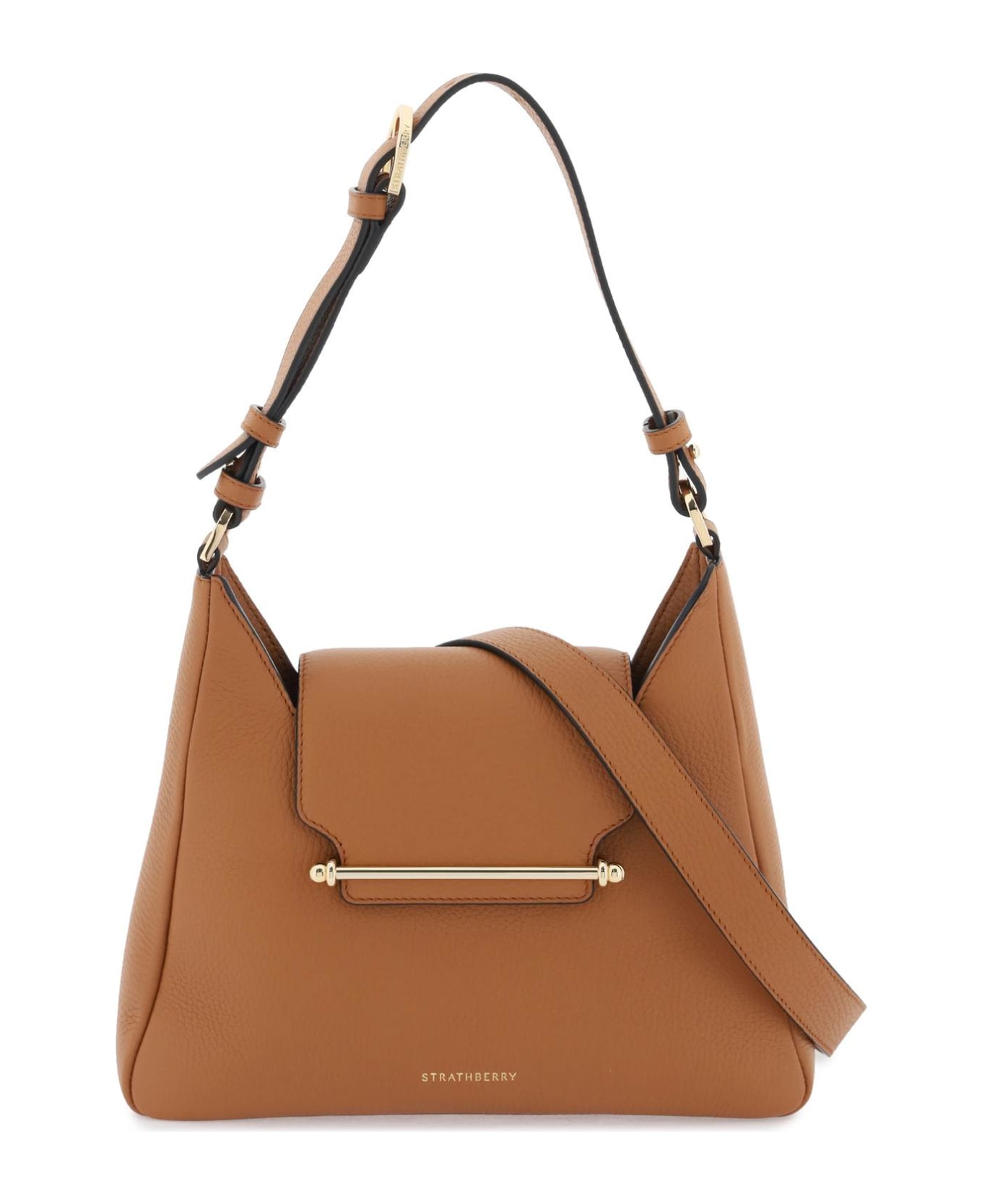 Strathberry 'Multrees Hobo' shoulder bag made of soft grained leather with iconic metal Bar applied to the flap. Structured shape, magnetic closure, suede interior with one open pocket, adjustable handle and a second adjustable and detachable shoulder strap for a crossbody look. Gold-finished metalware.