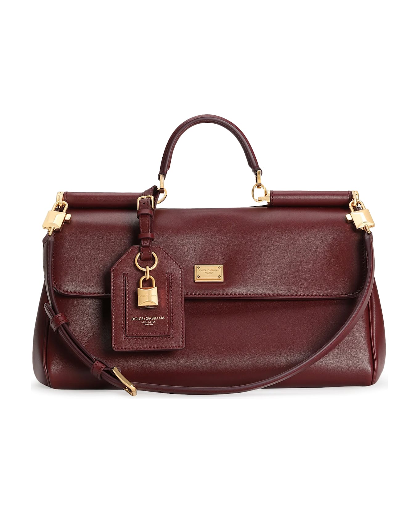 Tuck-in closure with flap and metal logo plaque Leather handle and removable and adjustable leather shoulder strap Single compartment and one internal zip pocket Made in Italy Leather Lining: 75% cotton 15% leather 10% acrylic W: 30 cm x H: 20 cm x D: 13 cm SKU: BB7782B732180346