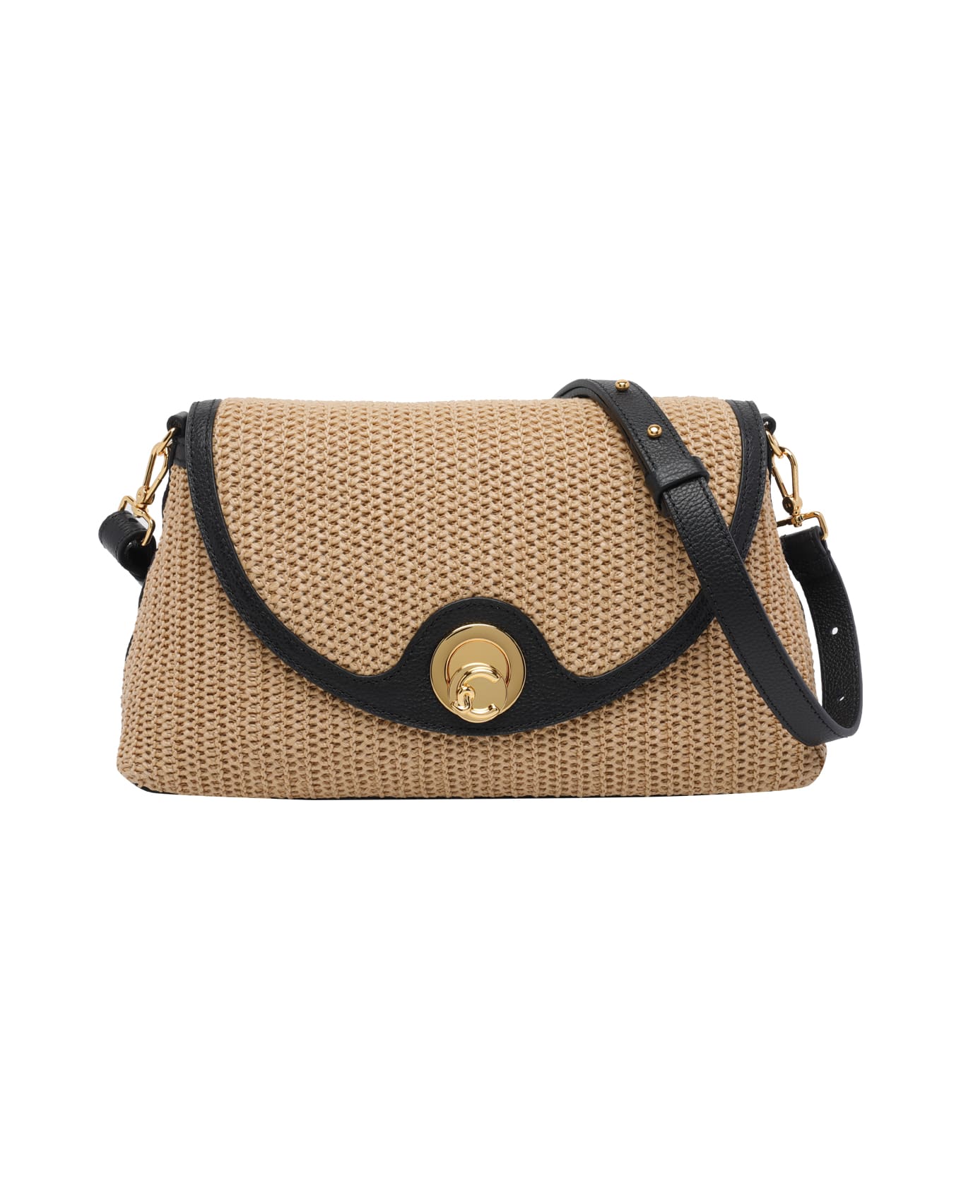 Coccinelle beige Nikila Straw crossbody bag, turn lock closure, inner zip pocket and one open pocket, adjustable and removable shoulder strap