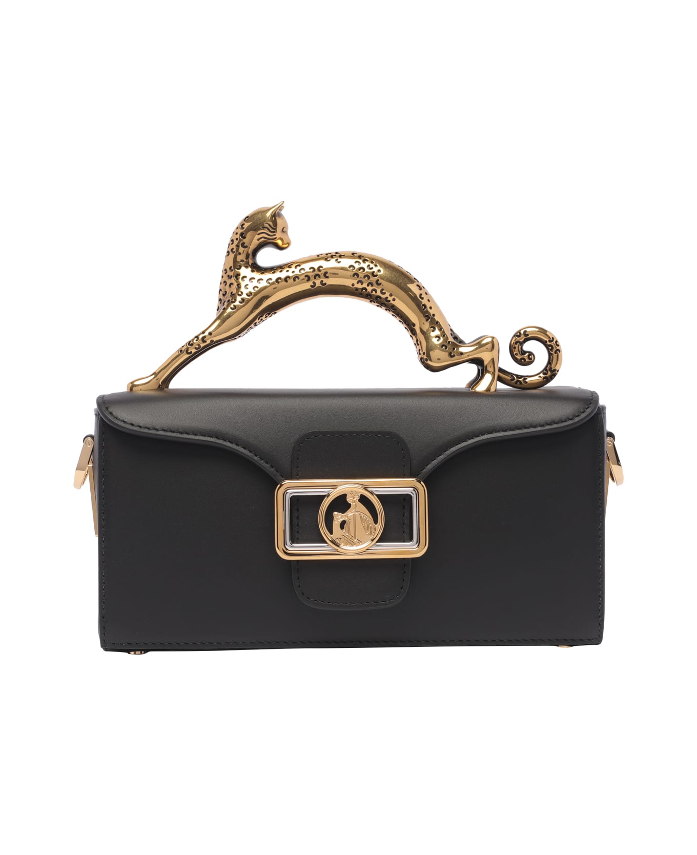 Lanvin black Pencil Cat crossbody bag, nano model, magnetic closure, inner slot, adjustable and removable shoulder strap, cat handle Composition: 100% Calf Leather