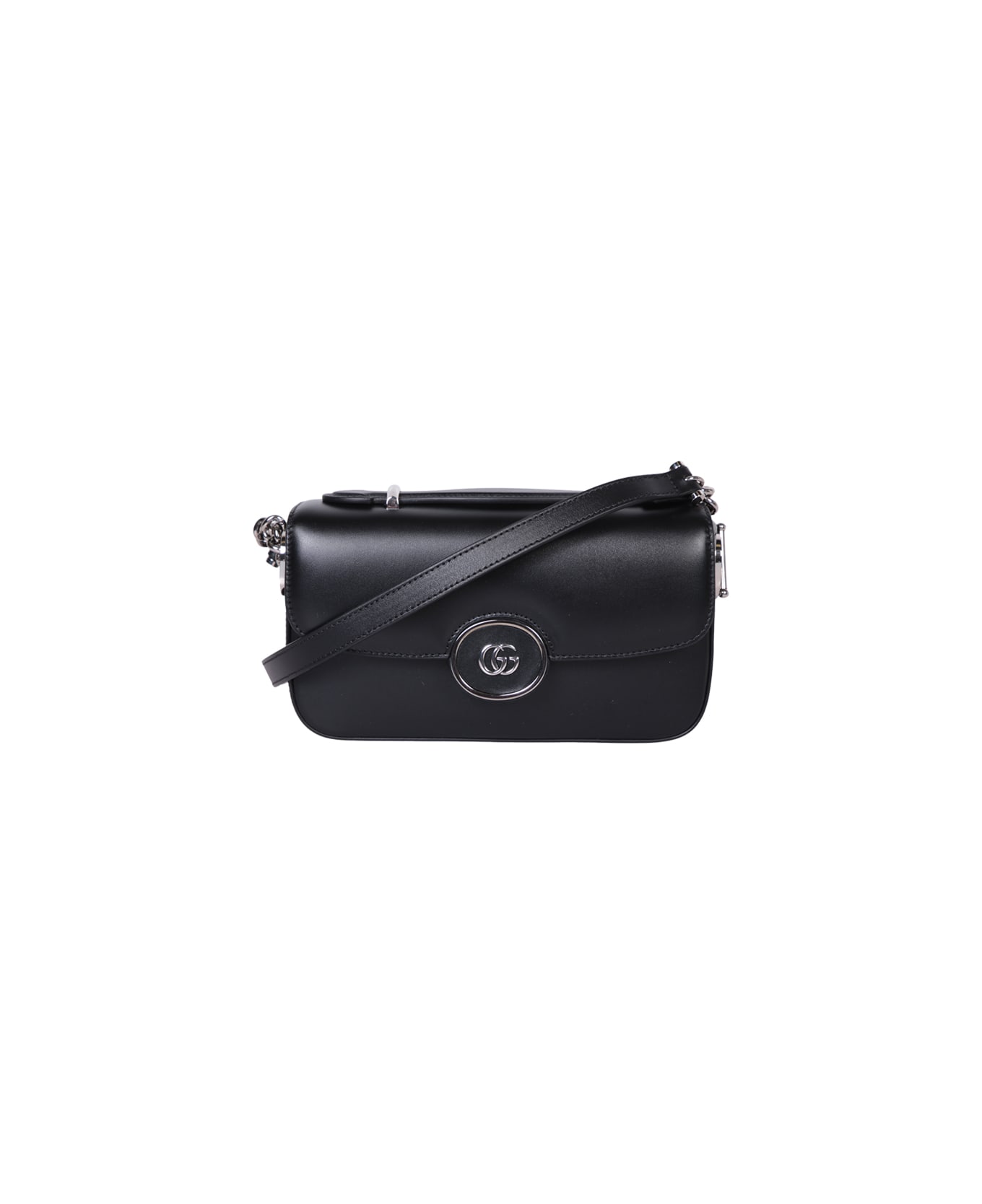 Foldover top. Magnetic fastening. Main compartment. Internal zip fastening pocket. Single top handle. Adjustable shoulder strap. Logo GG plaque to the front. Silver-tone hardware. Color: black