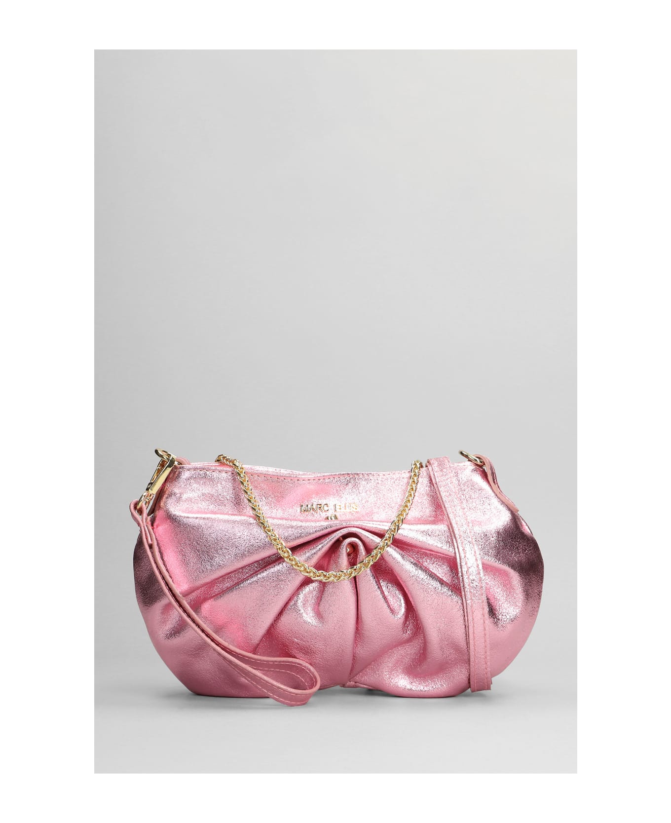 Sasha Party Shoulder bag in rose-pink leather, shoulder strap, chain detail, draped, zip clousure, Made in Italy, 100% leather, Height 190 mm, Width 310 mm