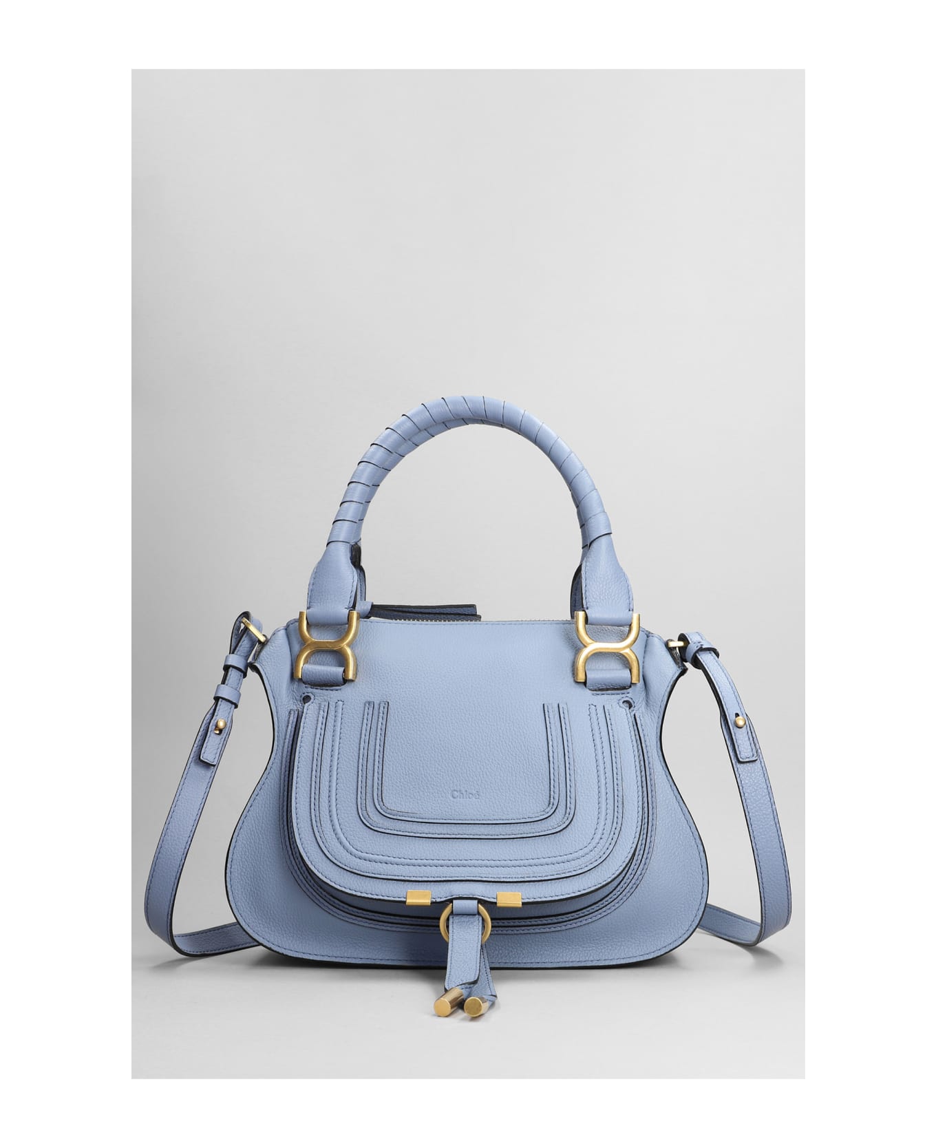 Shoulder bag in blue leather, Height 250 mm, Width 360 mm, double handle, detachable shoulder strap, zip clousure, iconic ring detail, braided motif details, gold hardware, 100% leather, Made in Italy