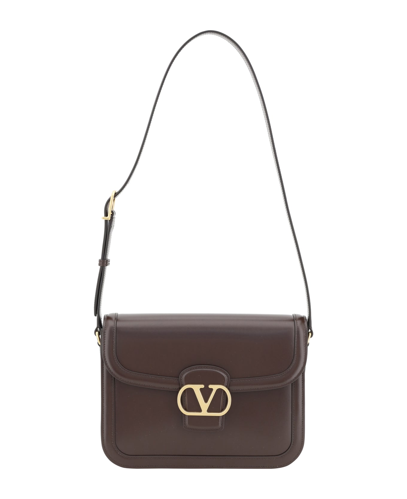 The valentino garavani shoulder bag is a refined and practical accessory with a rigid, structured design crafted from high-quality smooth leather. the front closure with magnetic flap offers a touch of functional elegance, while the discreetly applied golden plaque with the brand's iconic logo adds a luxurious accent. the flat, adjustable shoulder strap ensures optimal comfort, easily adapting to different heights and styles. with its clean, sophisticated design, this bag is a must-have for those seeking a mix of elegance and versatility.