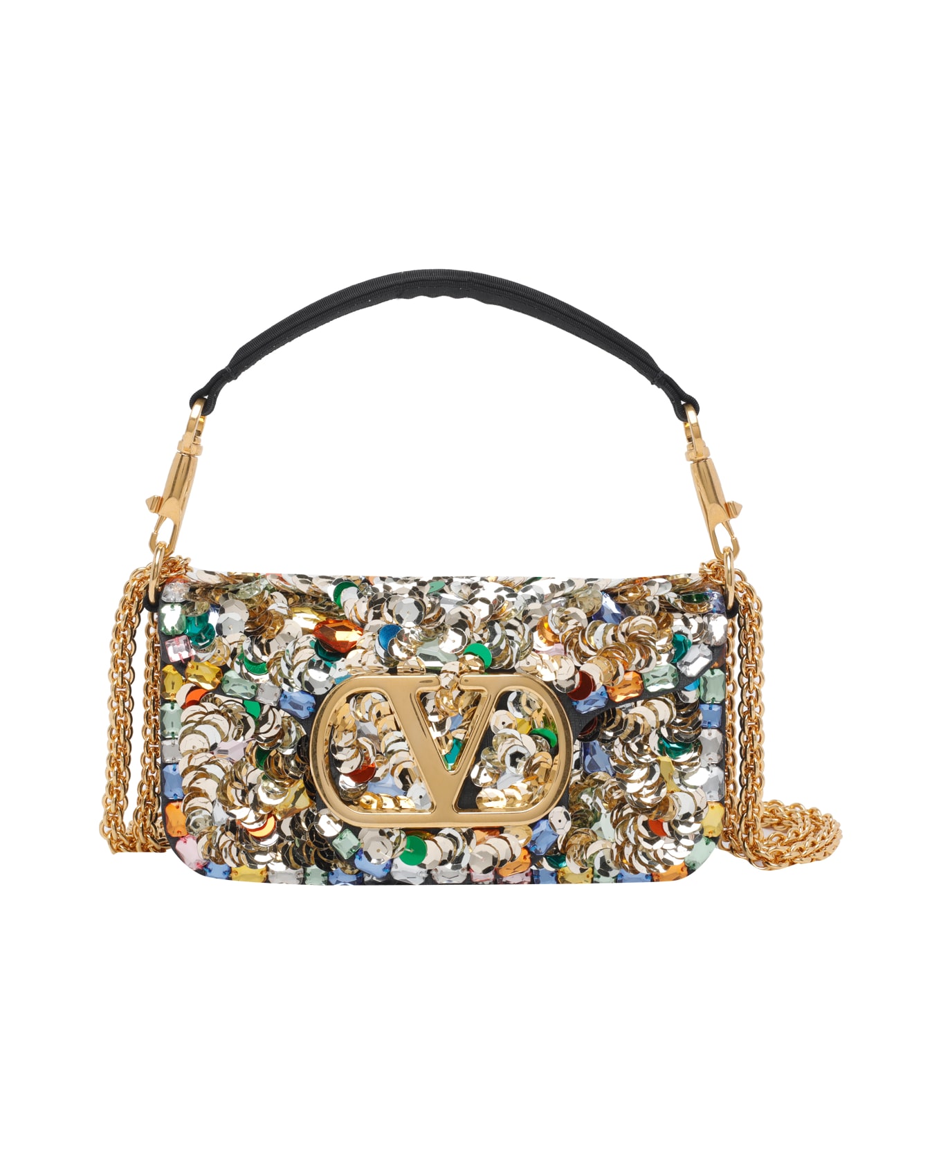 Valentino Gravani multicolor Small Loco' shoulder bag, magnetic closure, inner open pocket, removable shoulder strap, removable chain strap, sequins allover Composition: 100% Fabric And Paillettes