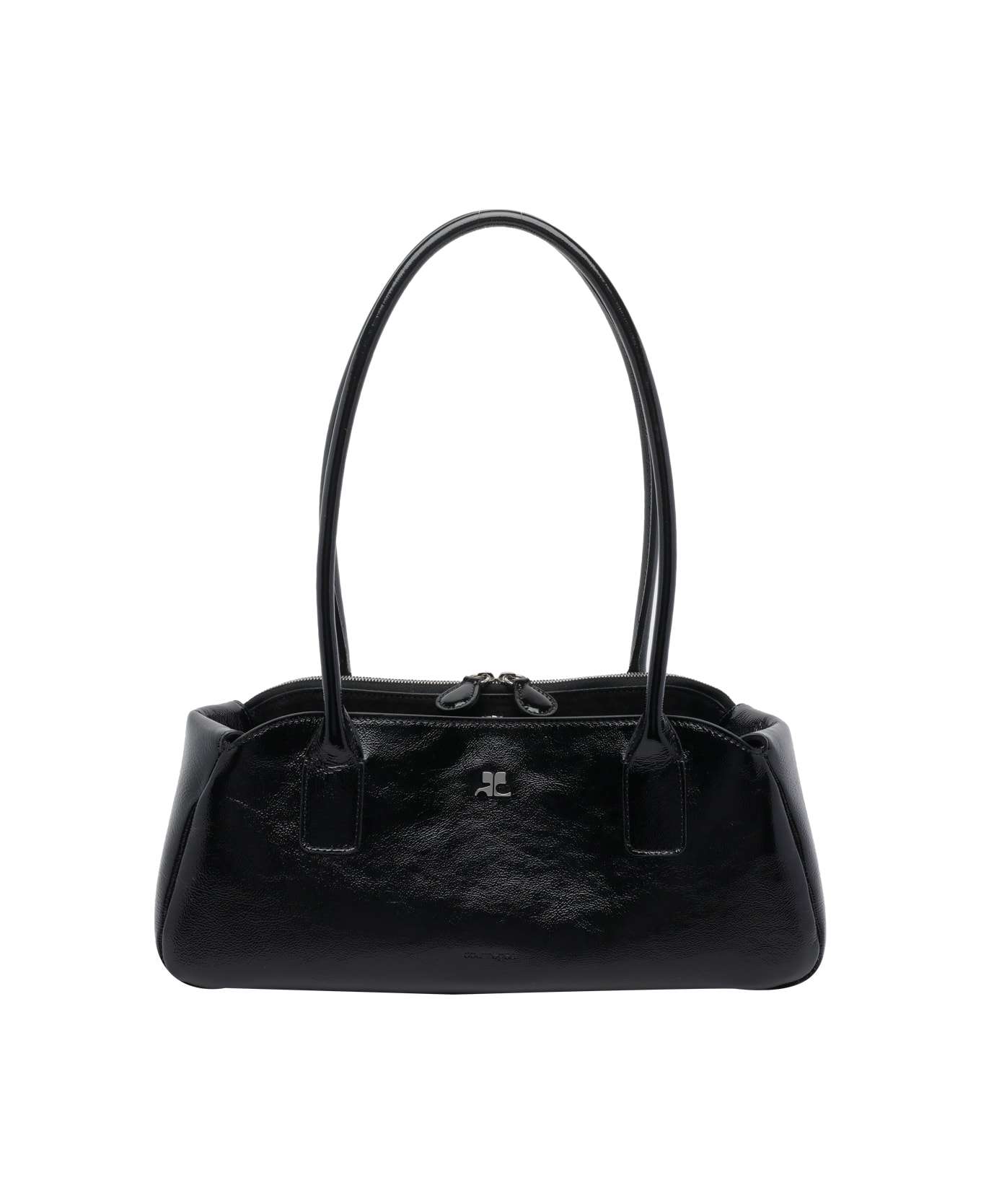 Courreges strip naplack shoulder bag, magnetic and hook closure, inner open pocket, one zipped pocket, double handle