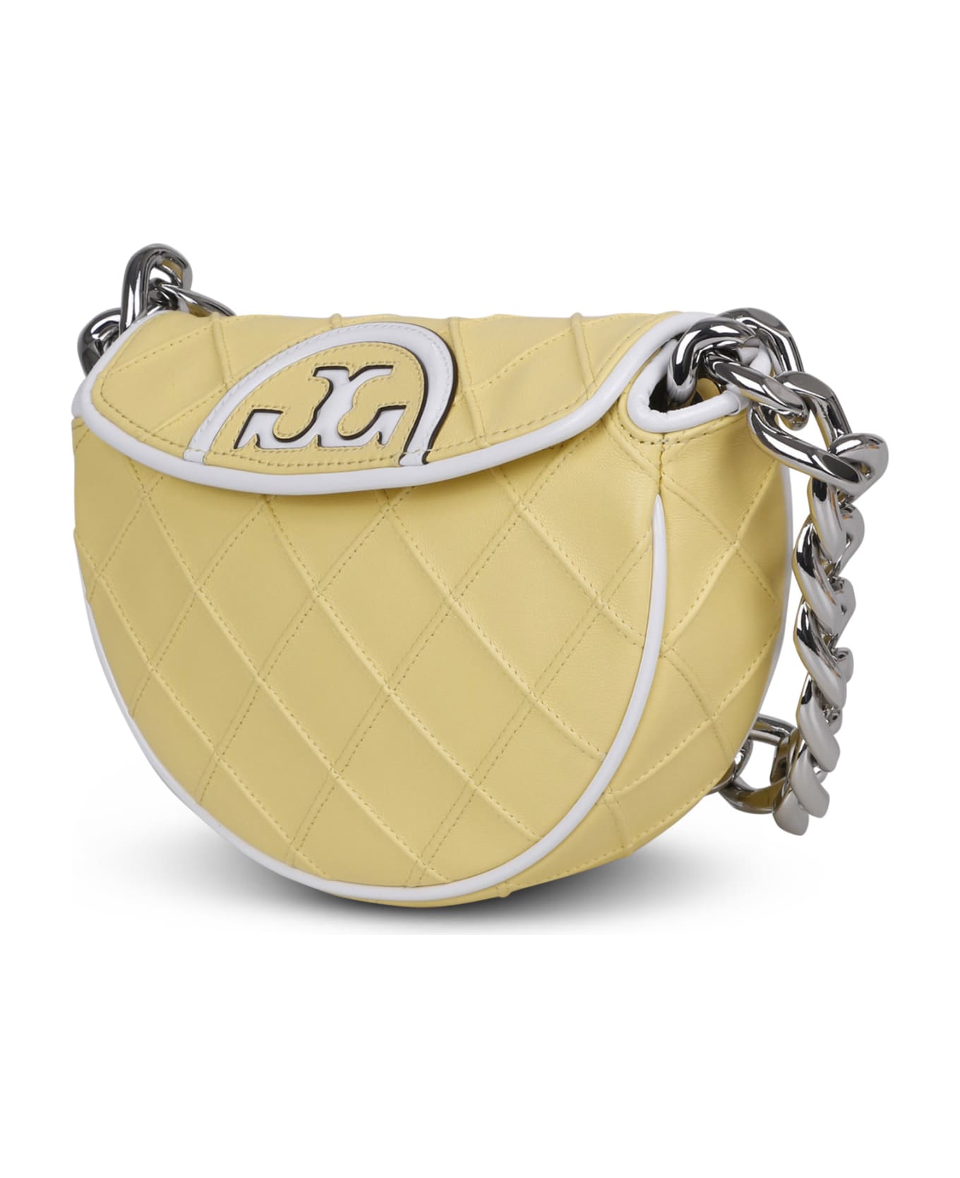 Mini 'Fleming' bag, padded finish, model with raised stitching, embossed logo in the front, shoulder strap with removable silver chain, flap at the top with magnetic closure, single compartment, by Tory Burch