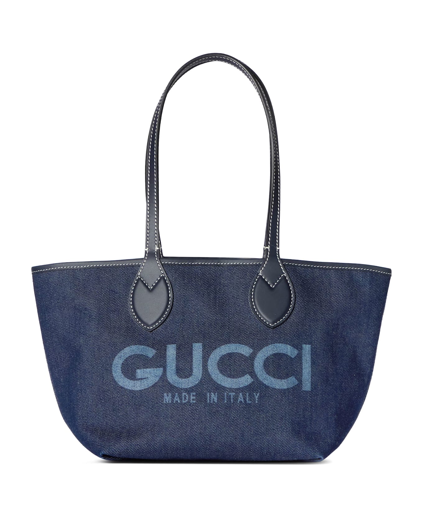 Two leather handles with contrasting stitchings Logo print on the front Single compartment Made in Italy Denim/GG supreme SKU: 820496FAD3J_8441