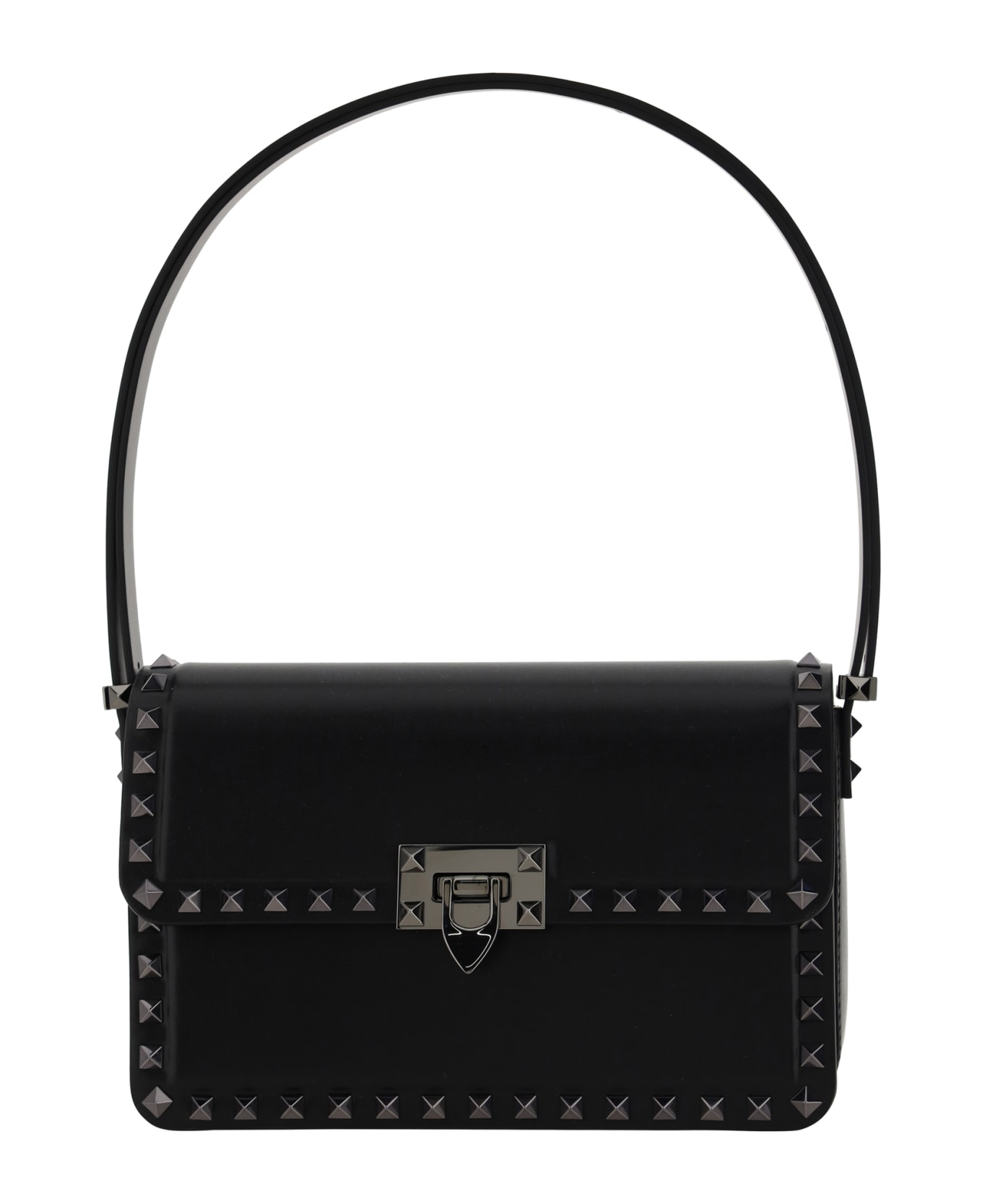 Calfskin rockstud shoulder bag by valentino garavani, smooth leather design, beading made with iconic brand studs applied on front and back, front closure by swivel, iconic brand monogram printed in pressure and contrast on back, leather shoulder strap and removable chain. Composition: 100% % Calf Leather Bos Taurus