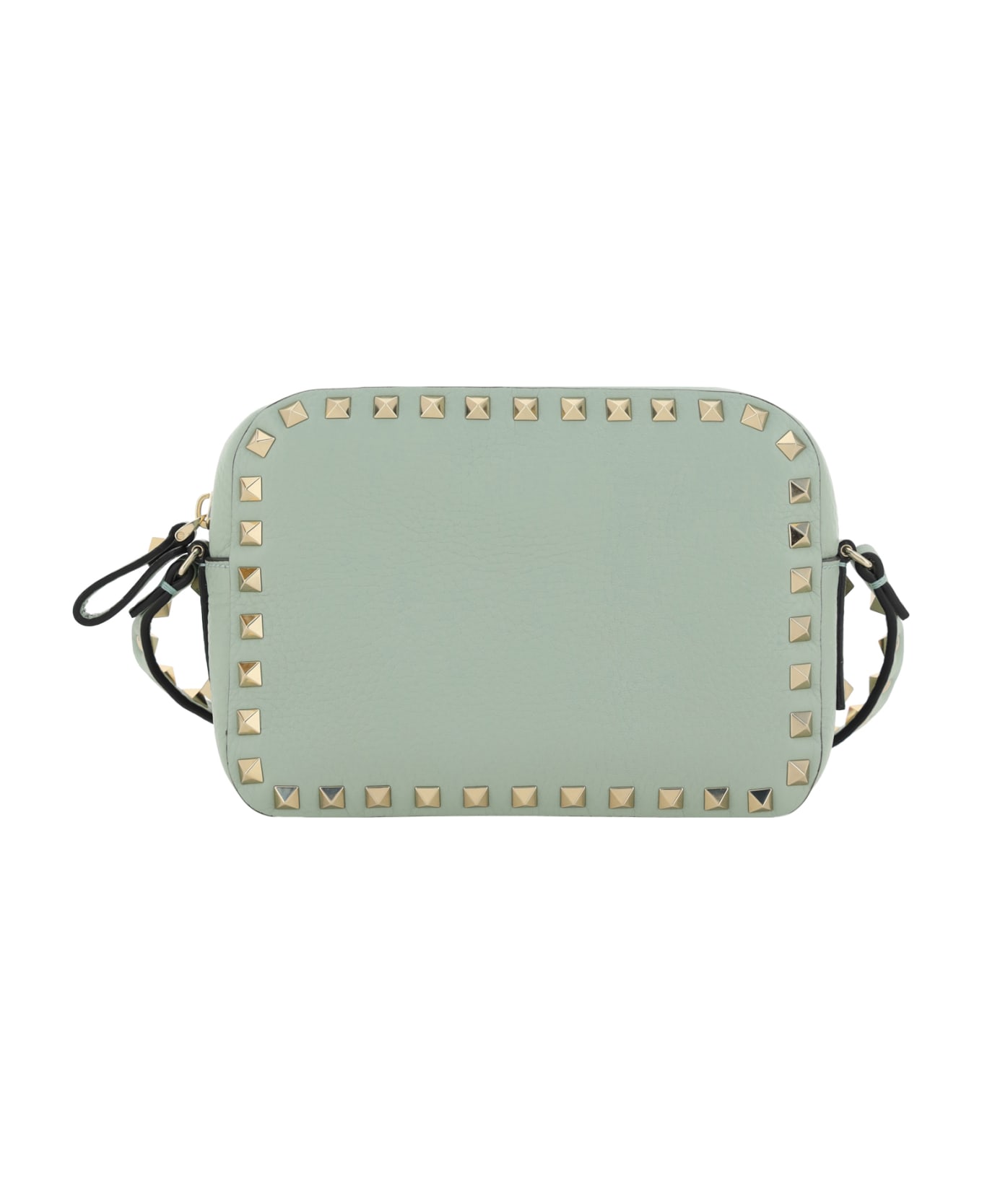 Calfskin rockstud shoulder bag by valentino garavani, grained leather design, beading made with the brand's iconic studs applied on front and back, top zipper closure, iconic brand monogram printed in pressure and contrast on front, removable leather shoulder strap. Composition: 100% % Calf Leather Bos Taurus
