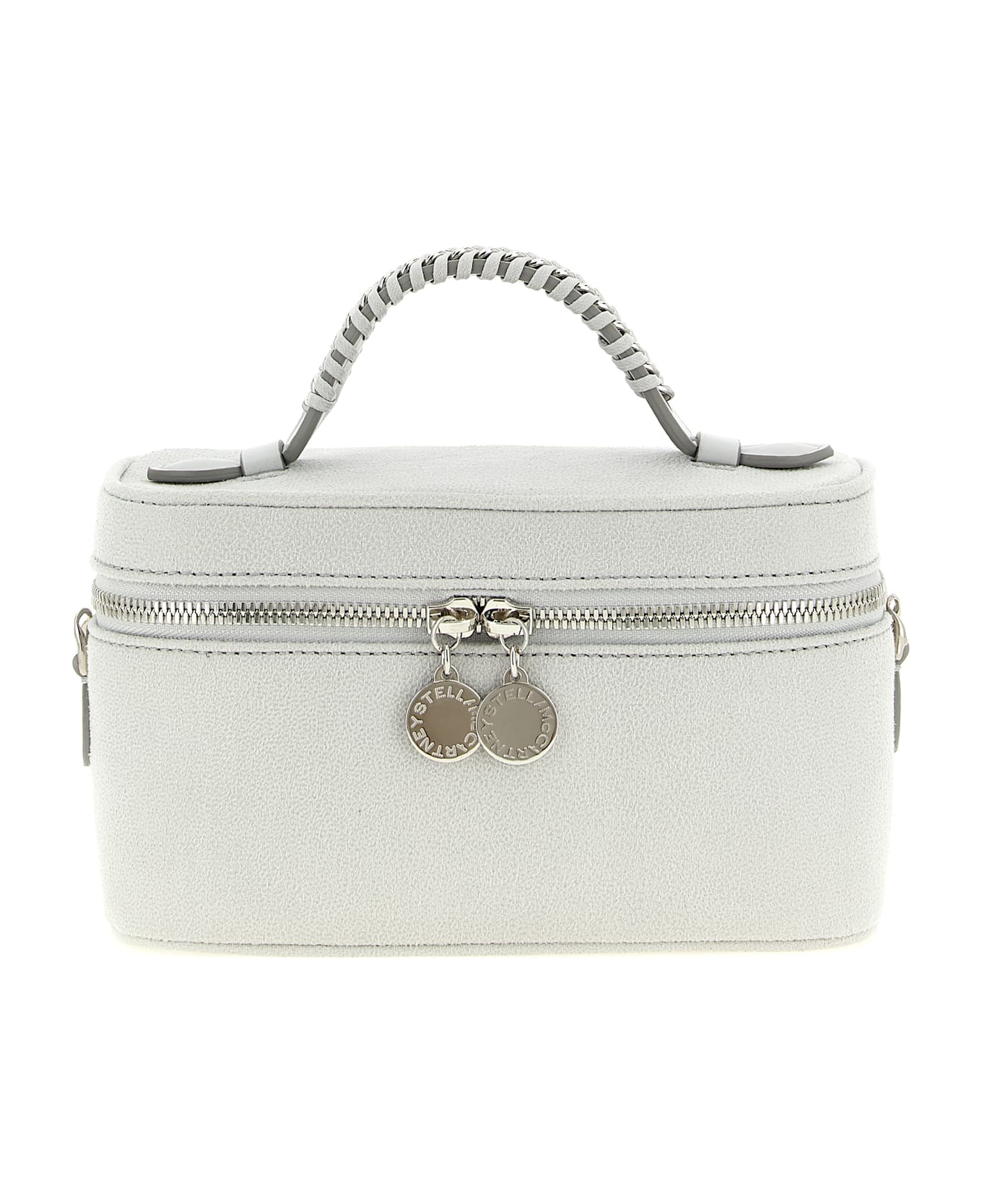 'Vanity Falabella' crossbody bag in matt Eco Shaggy Deer fabric with fixed handle, zip closure, diamond-effect chain shoulder strap in brass and removable aluminium. SUSTAINABLE: Products that do not use leather respecting cruelty-free ethics. Composition: 100% polyester