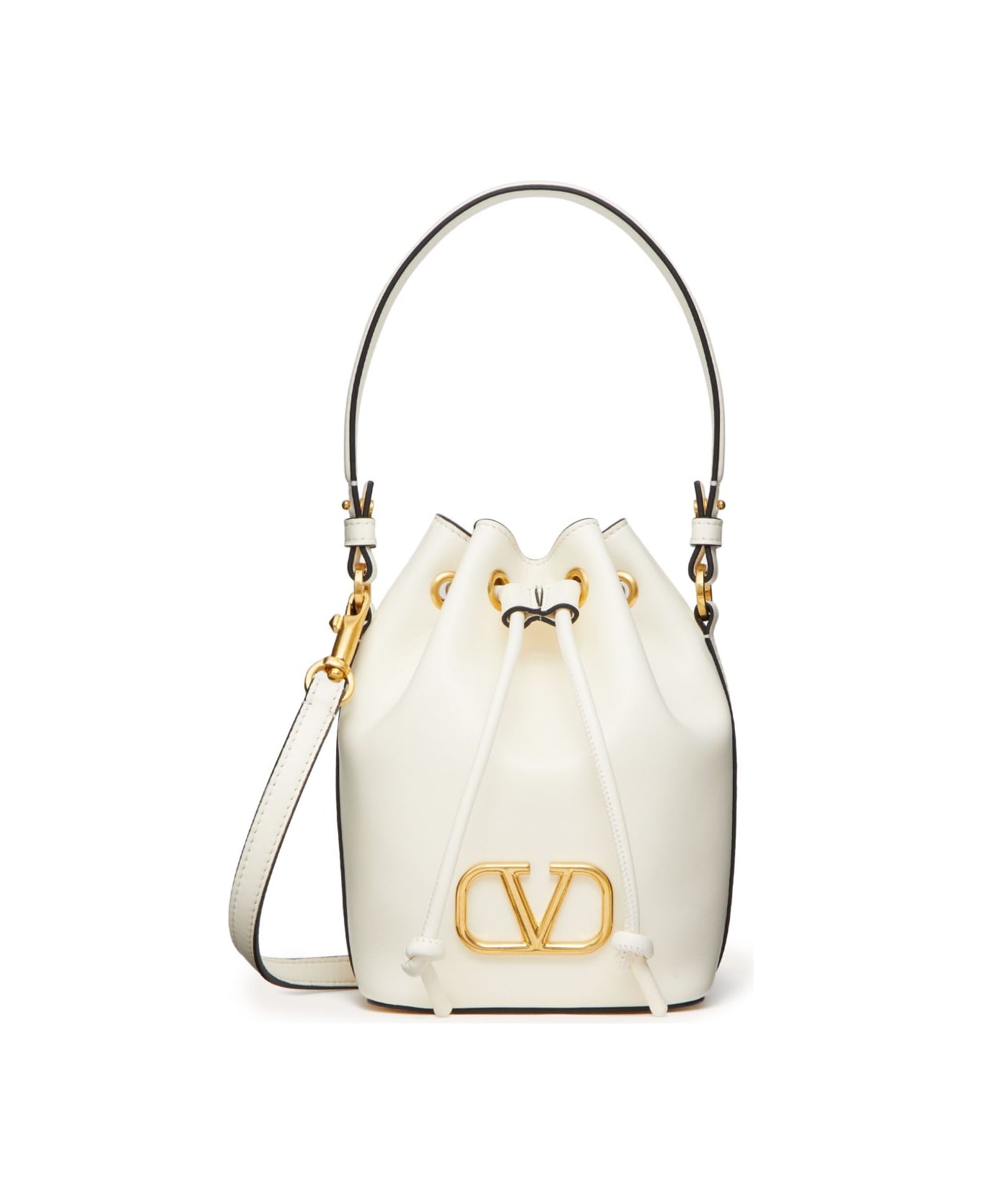 black calf leather smooth grain VLogo Signature drawstring fastening single top handle detachable shoulder strap main compartment debossed internal logo leather lining gold-tone hardware This piece comes complete with a protective dust bag. Composition: Lambskin, 100%