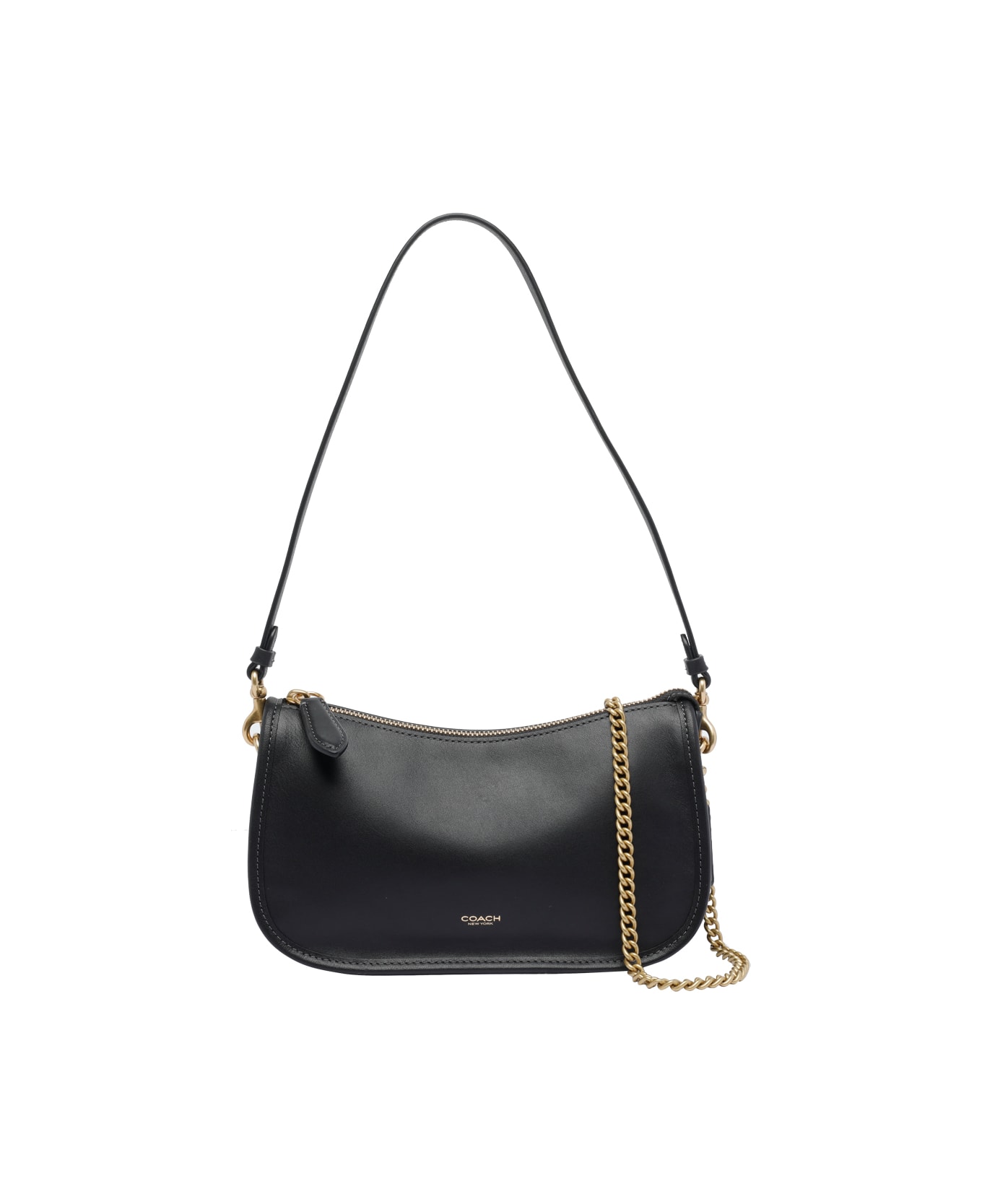 Coach black Waverly shoulder bag, zip closure, inner pocket with clip closure, removable strap, chain strap, leather uppper, frontal mini logo