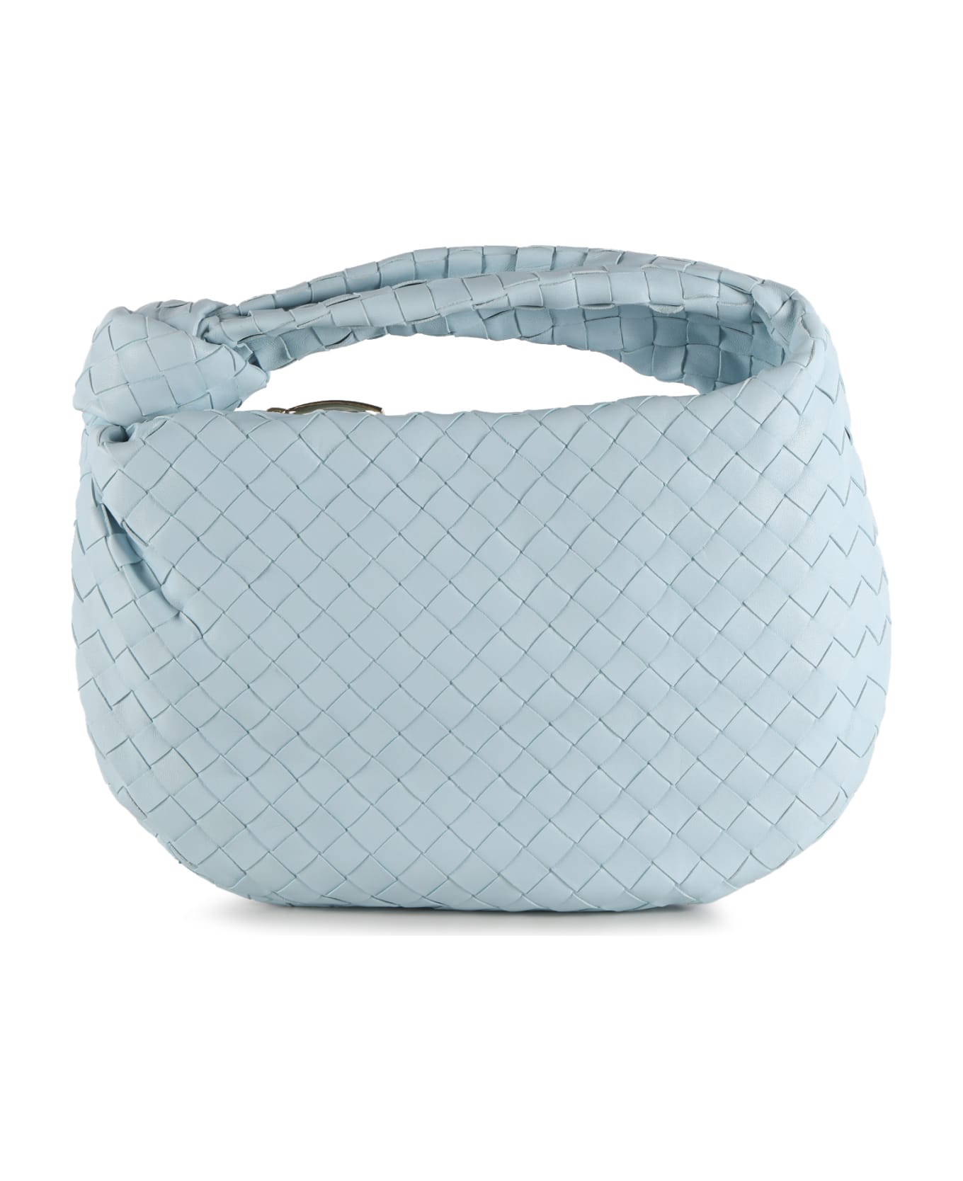 Pale blue-gold Teen Jodie from Bottega Veneta -Teen shoulder bag in leather with Intrecciato pattern -Zip closure -Metal accessories: silver finish -Measurements: 21x36x13 cm -Made in Italy -Colour: Light blue -100% Lambskin