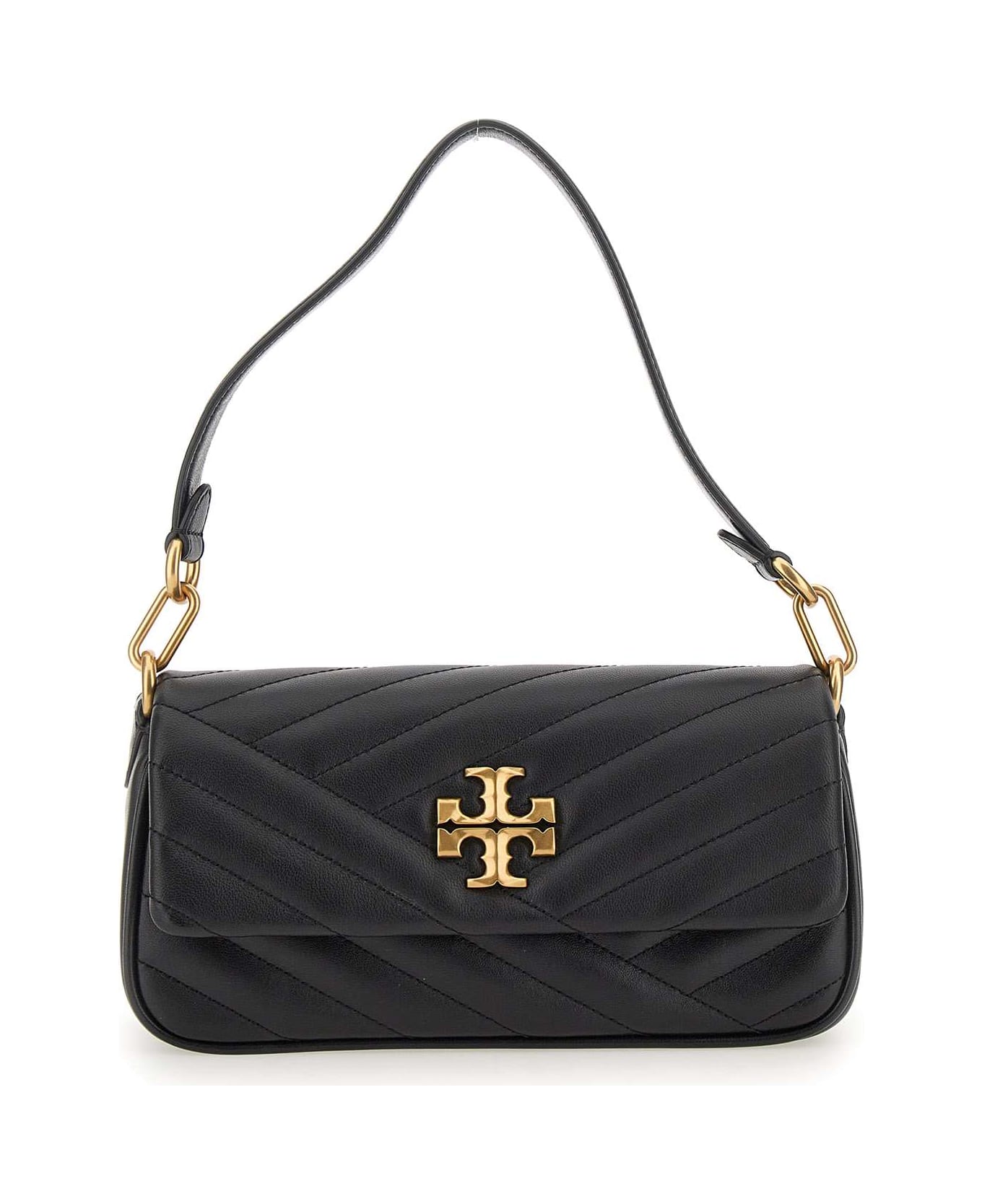 Tory Burch "Kira Chevron Small Flap" leather shoulder bag in matellassè, black, flap and snap fastening, iconic gold double T logo on front, removable and adjustable chain shoulder strap, top handle, internal welt pocket with logo protective bag included. Measures: height: 12cm, length: 24cm, depth: 6cm.