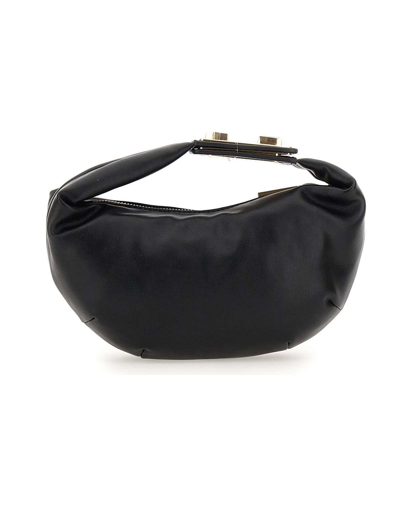 Chiara Ferragni "Puffy Mini" smooth handbag, black eco-leather, handle with shiny gold Eye Star Lock metallic logo, central zip fastening, inside pocket. Dimensions: length 22cm, height 12cm, depth 7cm.
