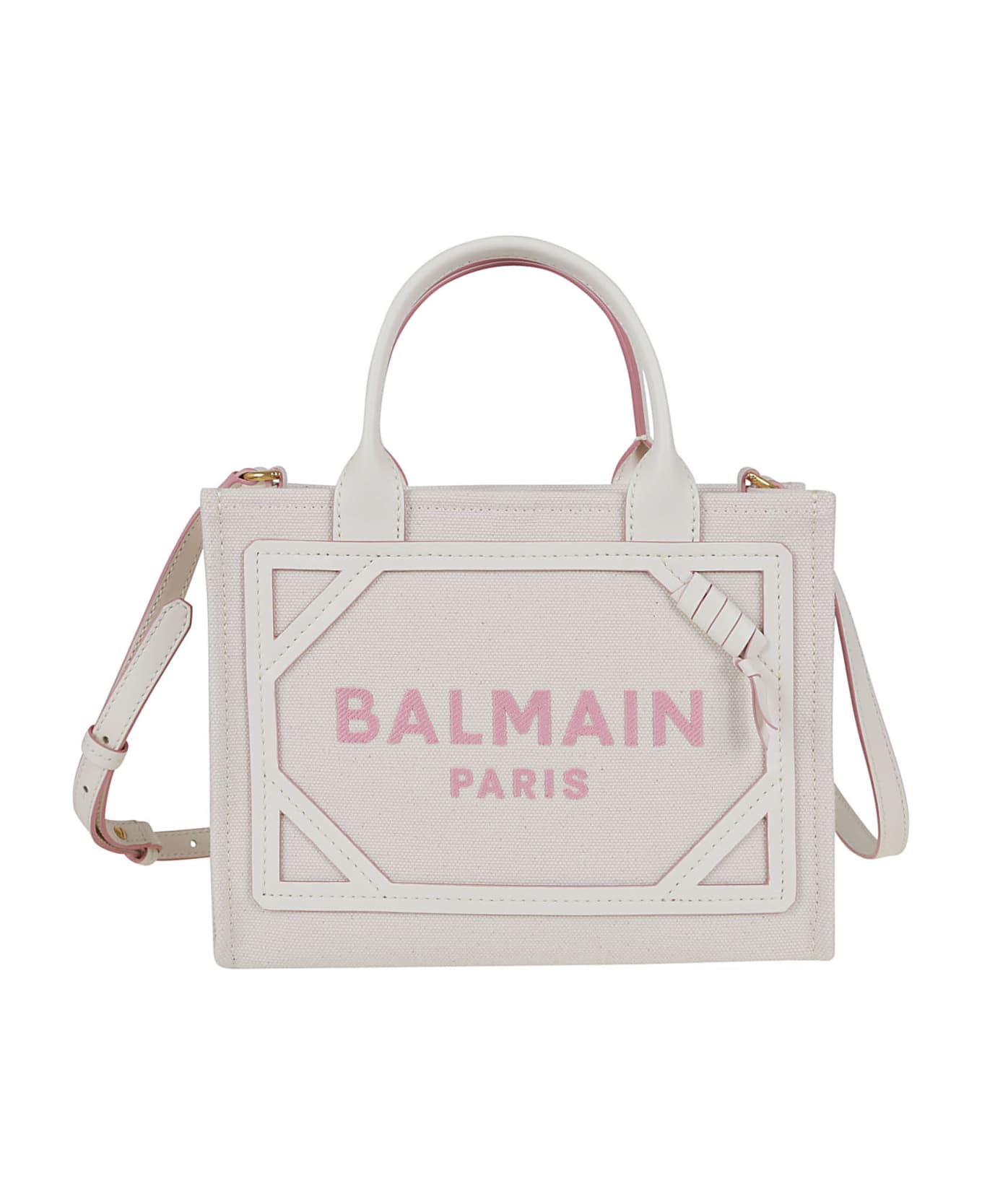 B-Army shopper in canvas and leather inserts BY BALMAIN. Leather handles; internal welt pocket. Contrasting embroidered BALMAIN PARIS logo detail. Removable shoulder strap. Protective case included