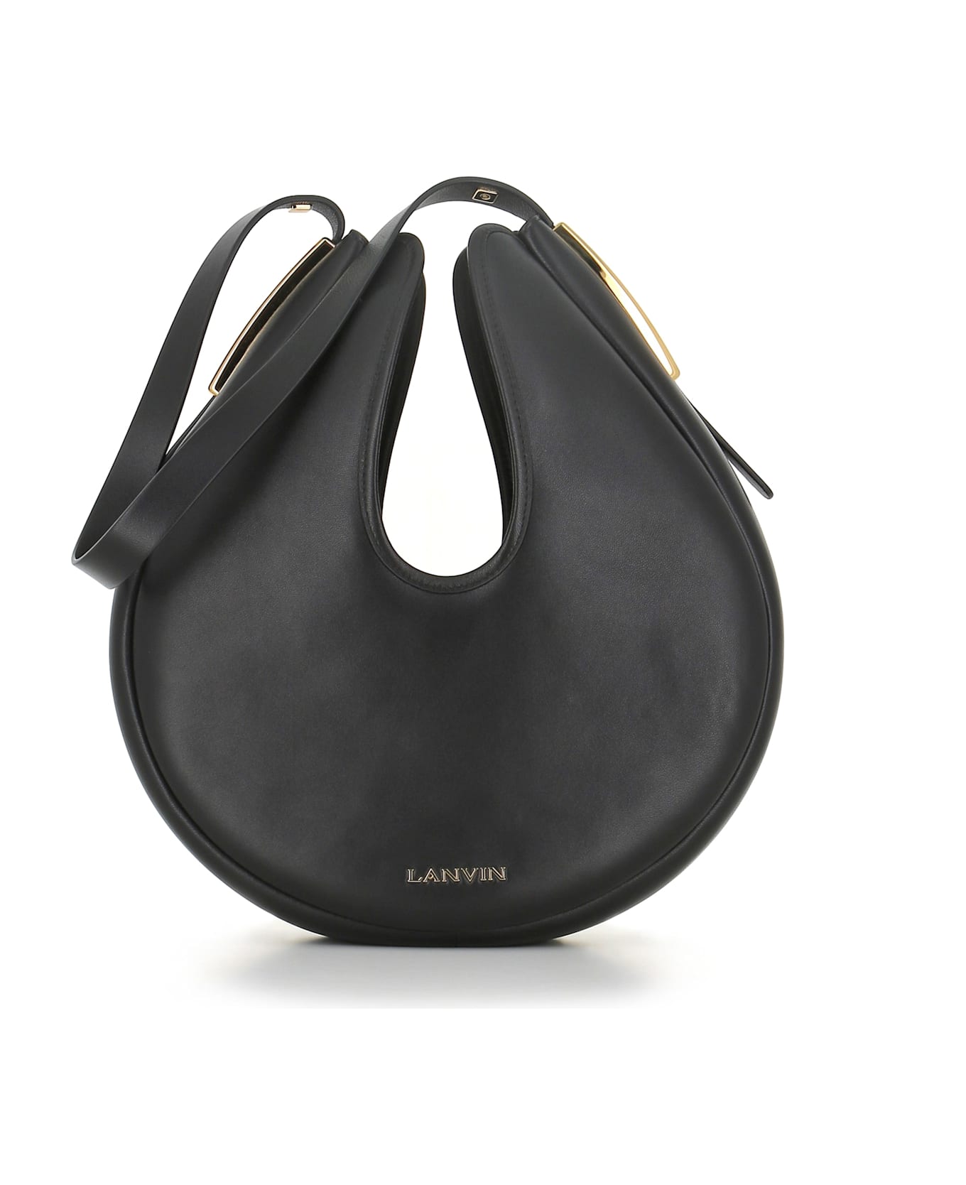 Black leather women's bag by Lanvin, featuring by a teardrop shape with card slots inside, a magnetic flap closure, metal gold fittings and suede lining. L x H x l : 31 x 34 x 8 cm Composition: Leather